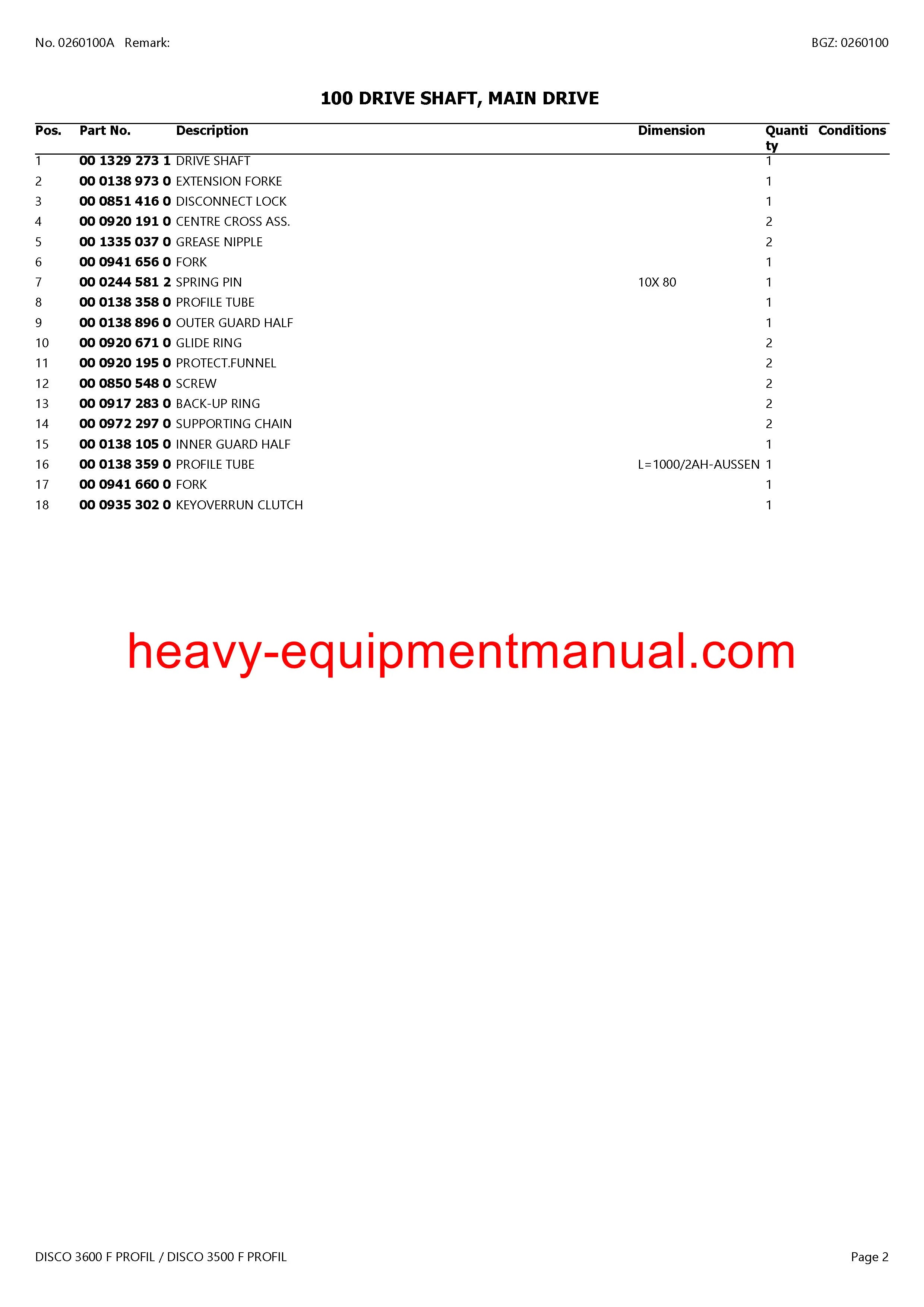 PDF Claas 3600, 3500 F Profil Disco Mower Parts Manual
