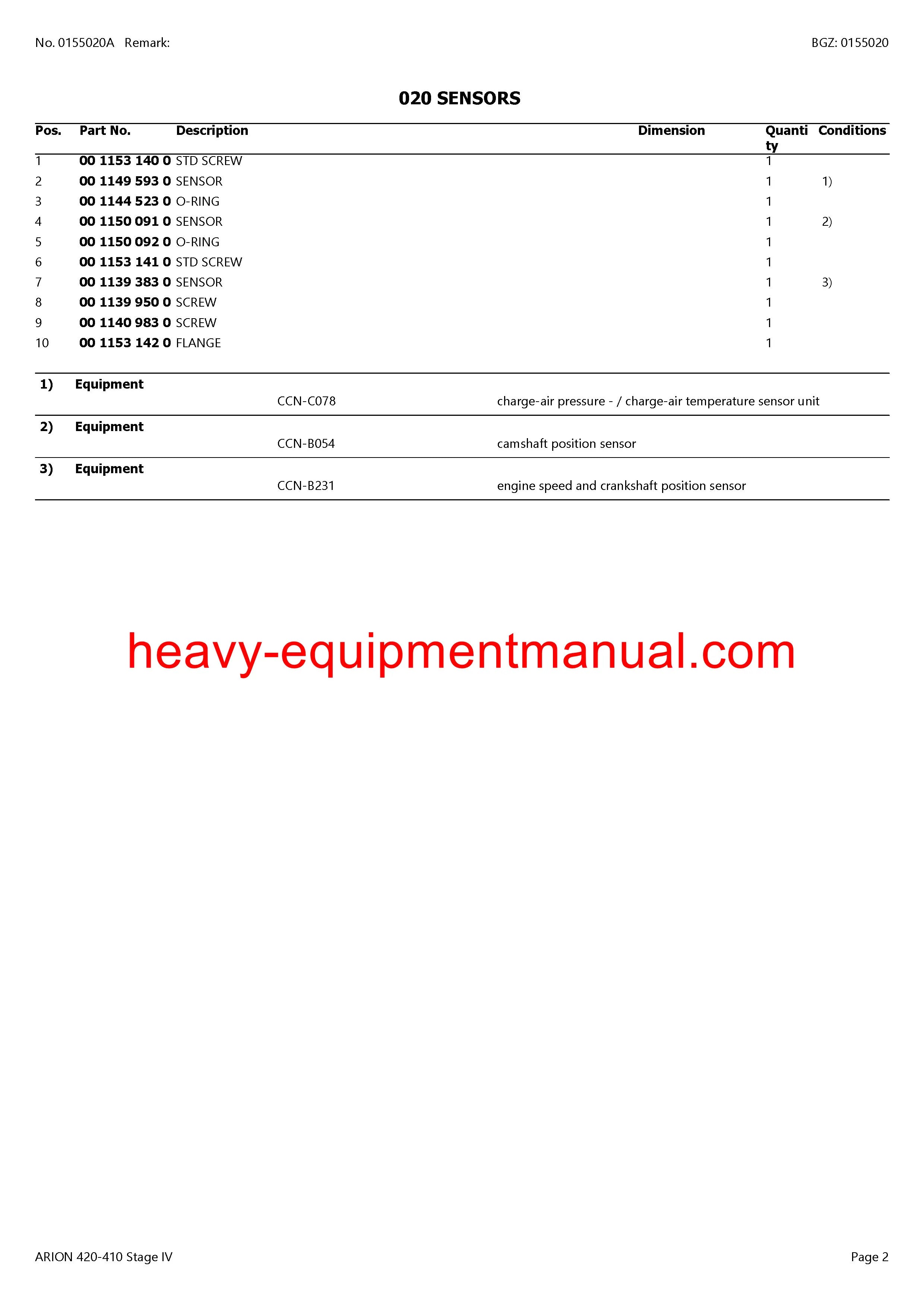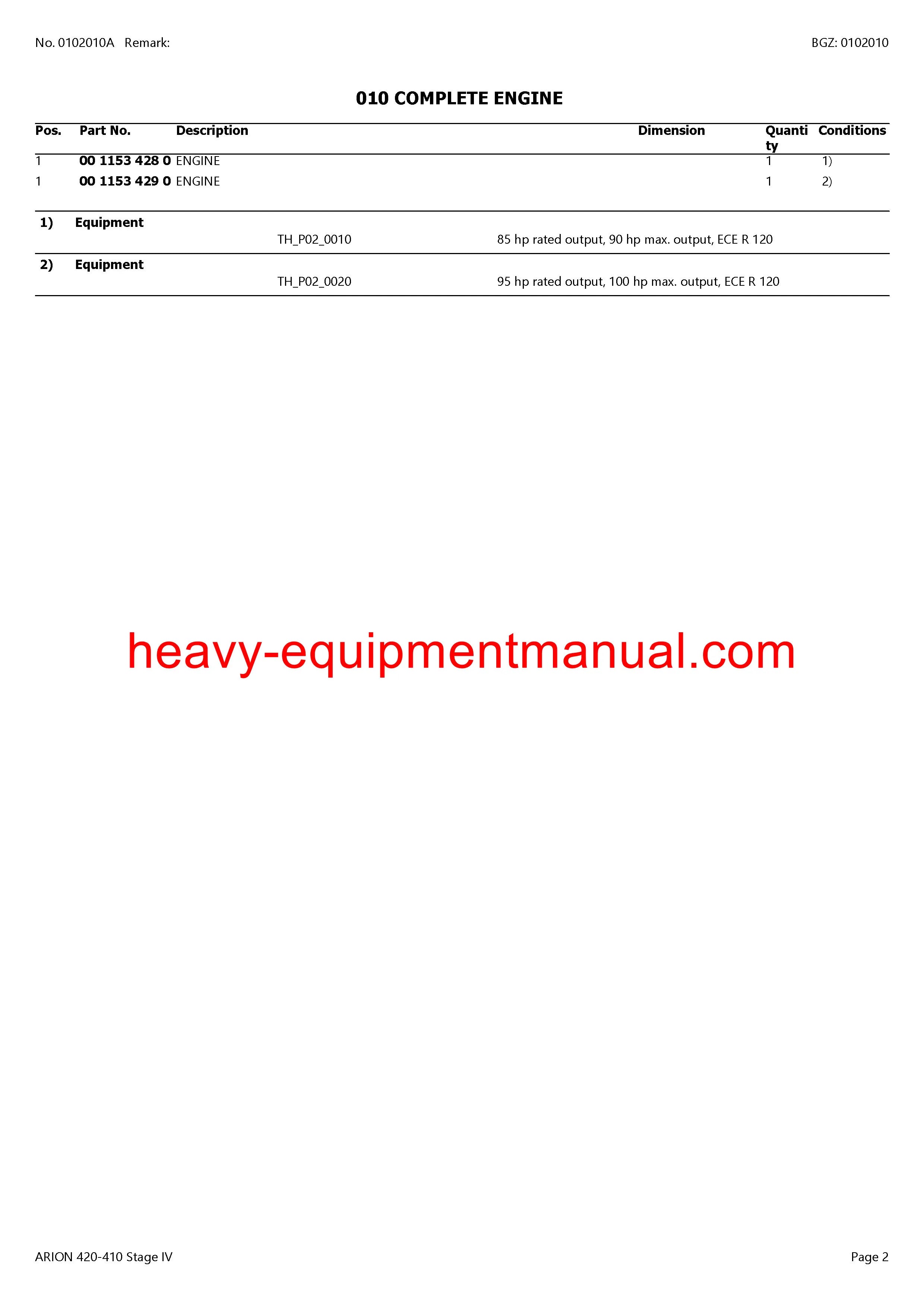 PDF Claas 420 - 410 Arion Stage 4 Tractor Parts Manual