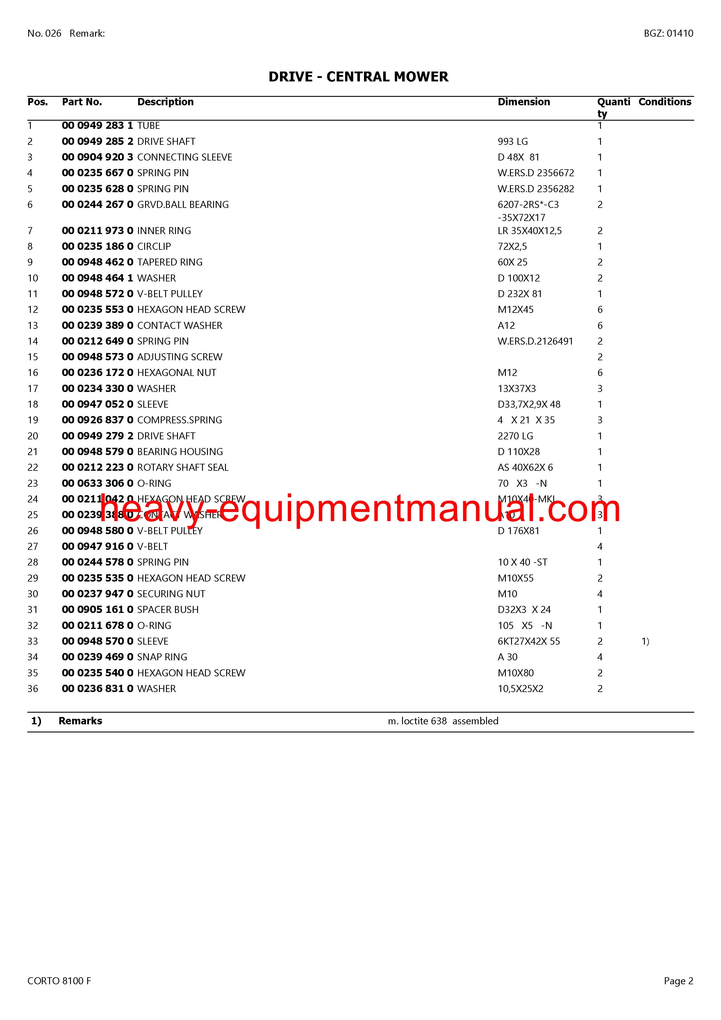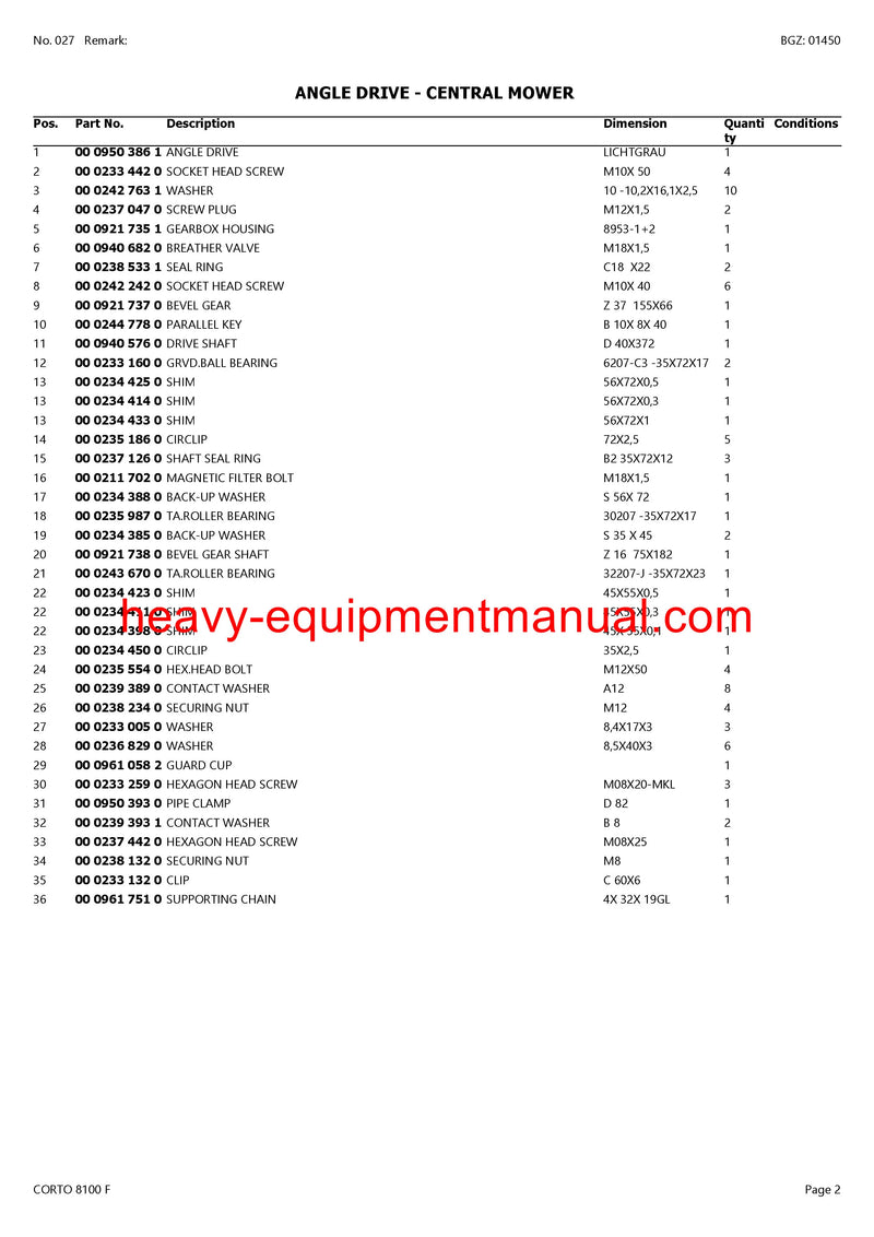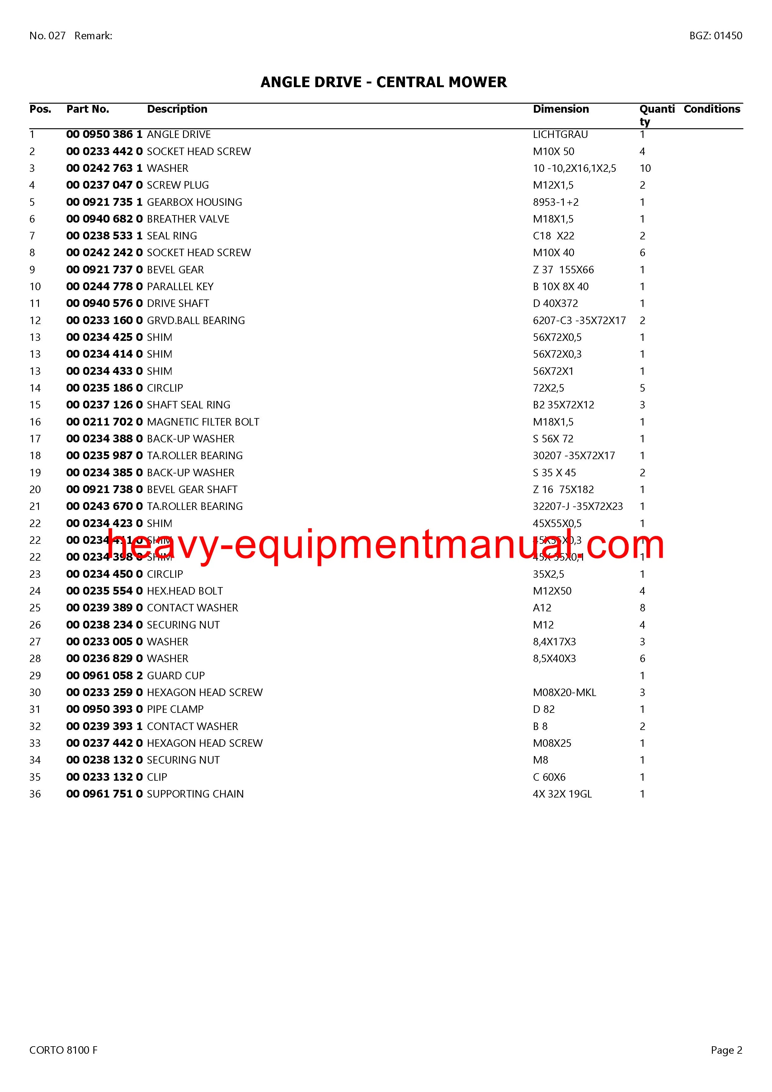 PDF Claas 8100 F Corto Mower Parts Manual