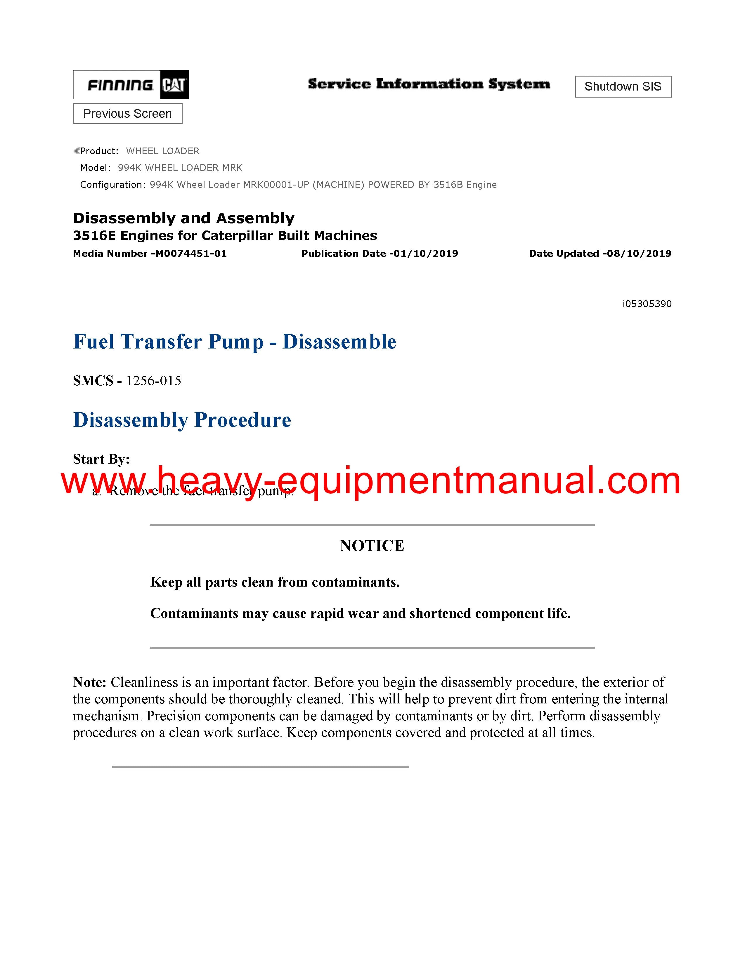 It is Complete Original Factory for Caterpillar 994K Wheel Loader. Covers all the service and repair information about Caterpillar 994K Wheel Loader. The information in this manual covers everything you need to know when you want to service and repair Caterpillar 994K Wheel Loader.