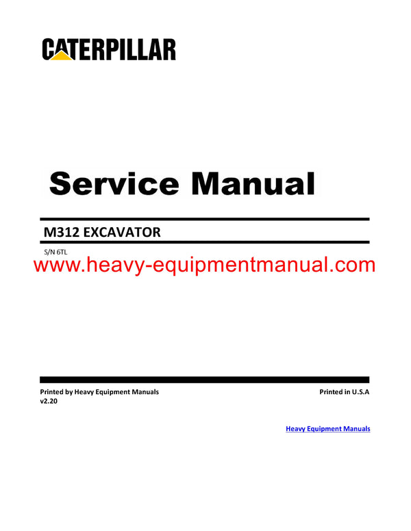 It is Complete Original Factory for Caterpillar M312 EXCAVATOR covers all the service and repair information about Caterpillar M312 EXCAVATOR. The information in this manual covers everything you need to know when you want to repair Caterpillar M312 EXCAVATOR.
