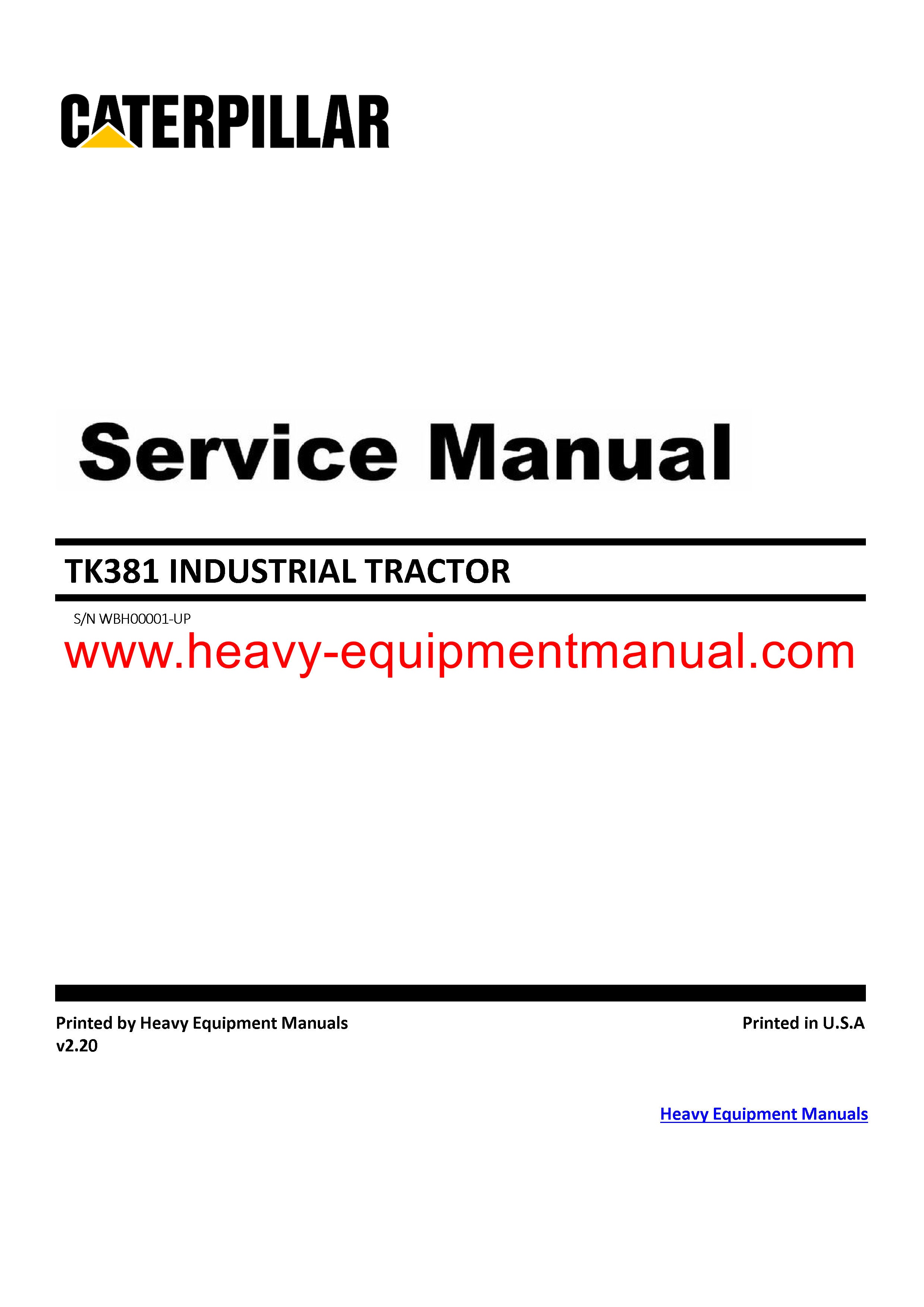 It is Complete Original Factory for Caterpillar TK381 INDUSTRIAL TRACTOR covers all the service and repair information about Caterpillar TK381 INDUSTRIAL TRACTOR. The information in this manual covers everything you need to know when you want to repair Caterpillar TK381 INDUSTRIAL TRACTOR.