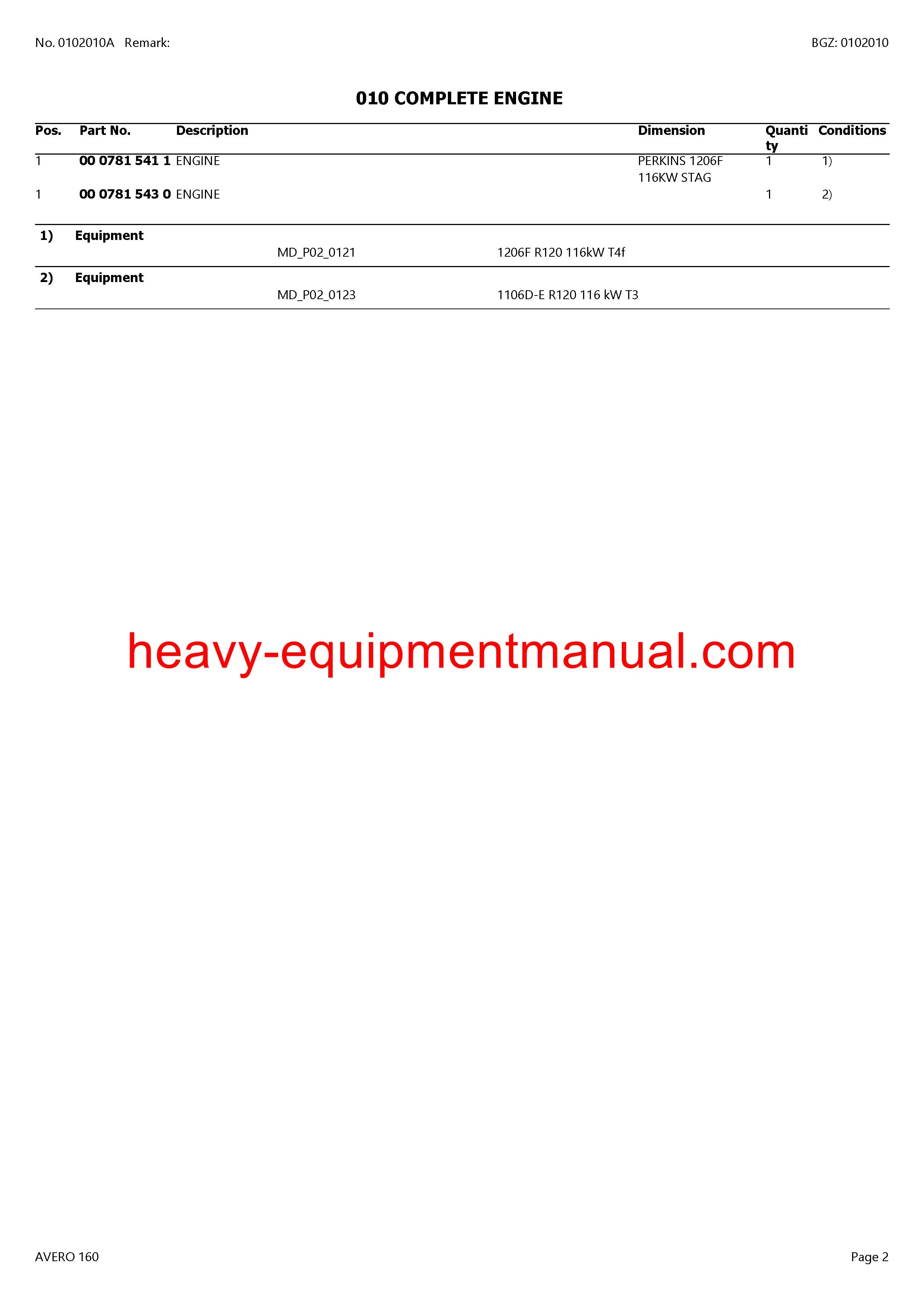 DOWNLOAD CLAAS AVERO 160 COMBINE PARTS CATALOG MANUAL (SN: 56000011-56099999)