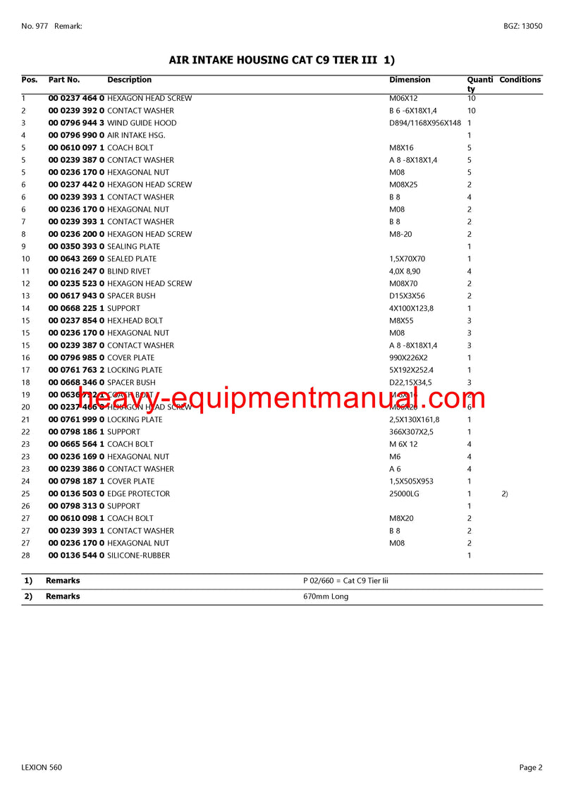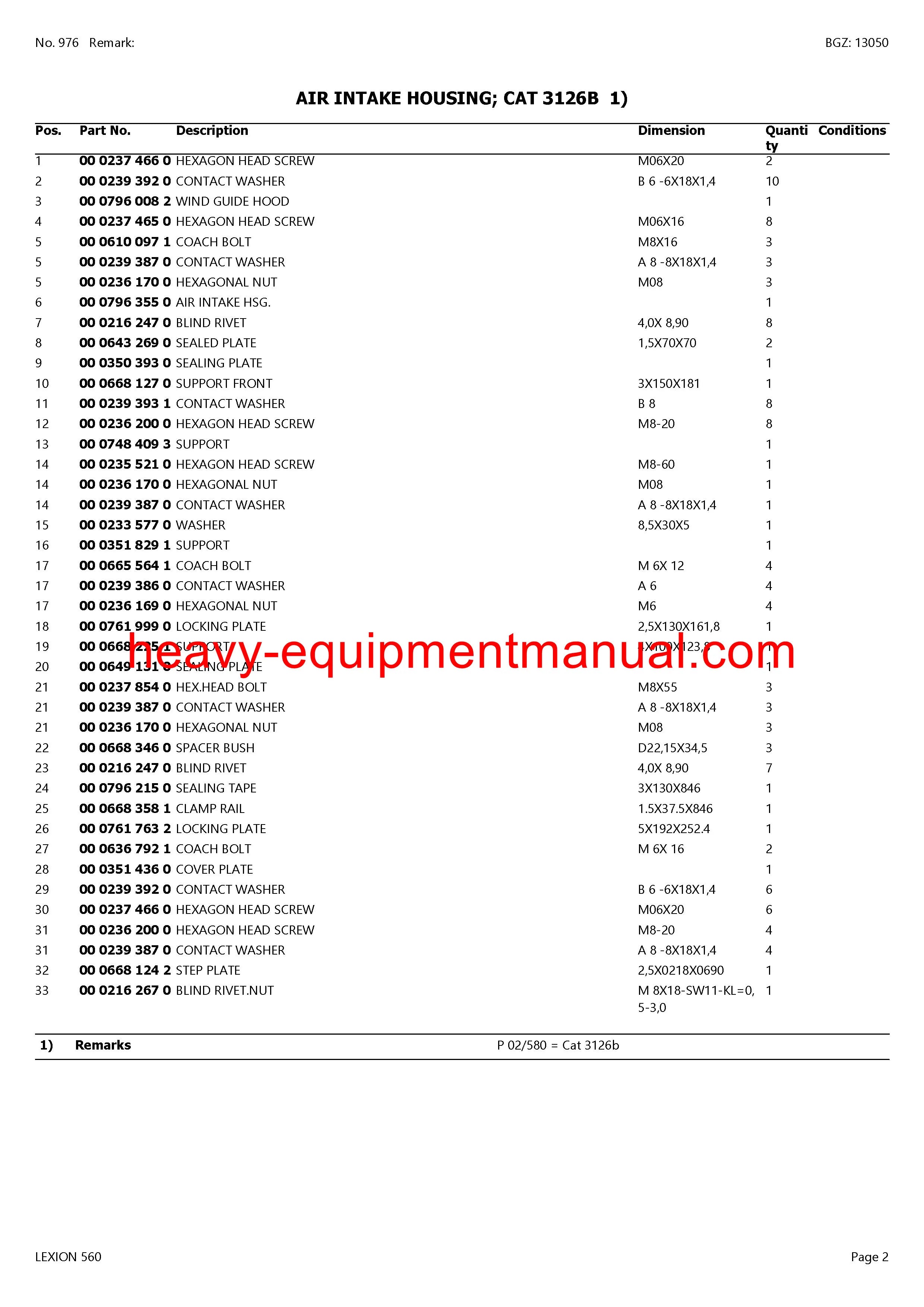 DOWNLOAD CLAAS LEXION (NORTH AMERICA) 560 COMBINE PARTS CATALOG MANUAL