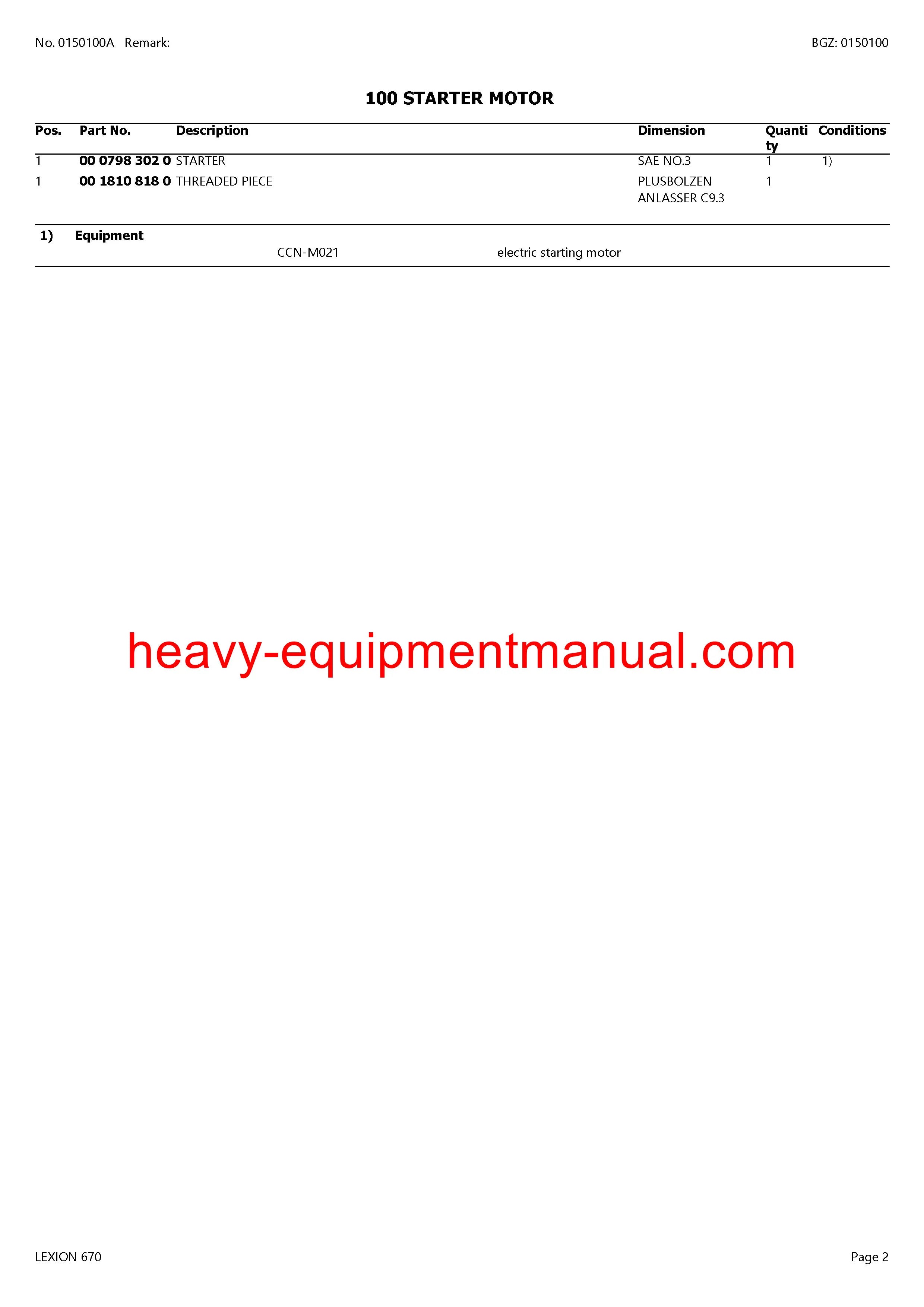 CLAAS LEXION (NORTH AMERICA) 670 COMBINE PARTS CATALOG MANUAL (SN: C7700011-C7799999)