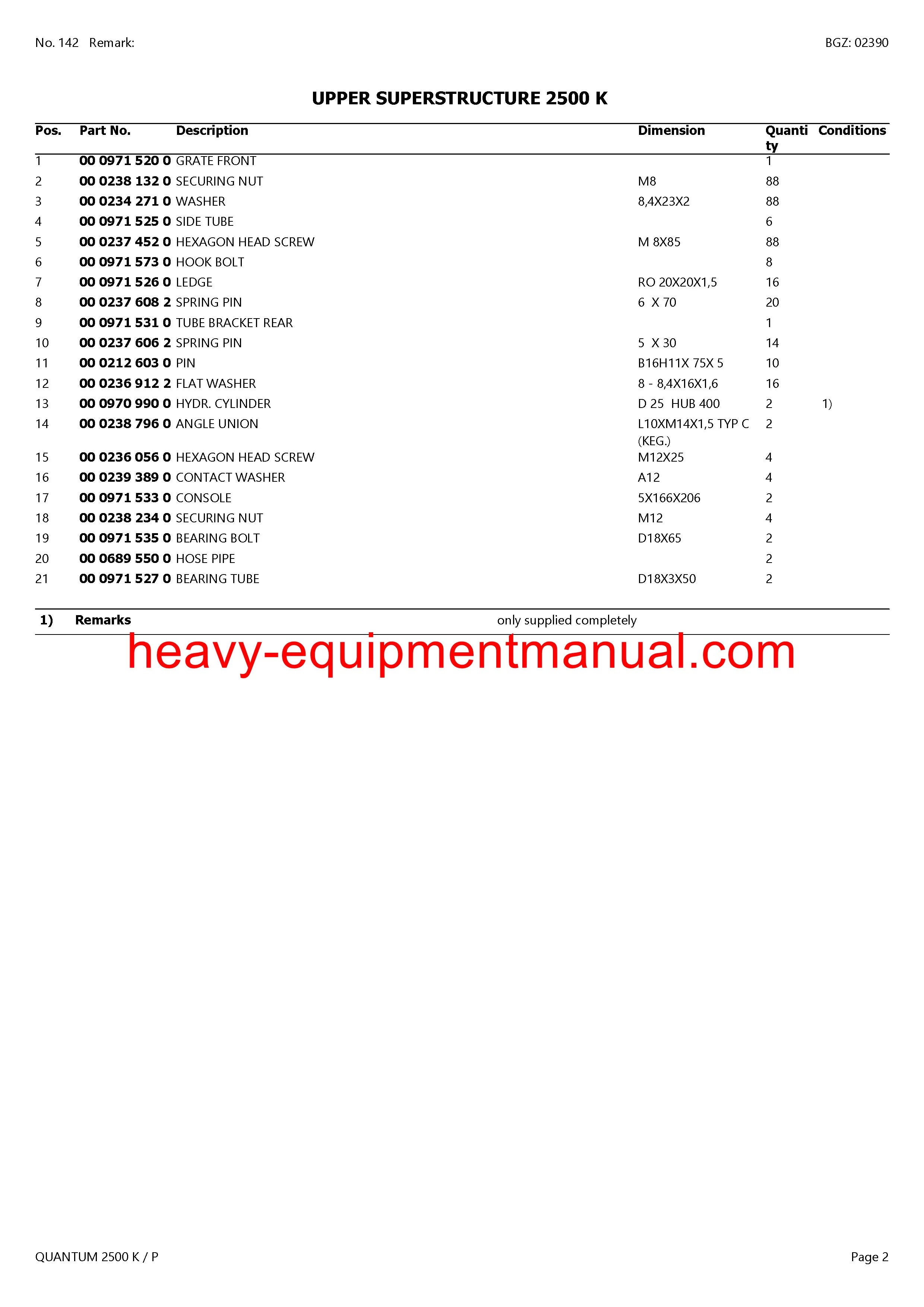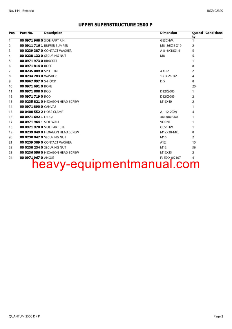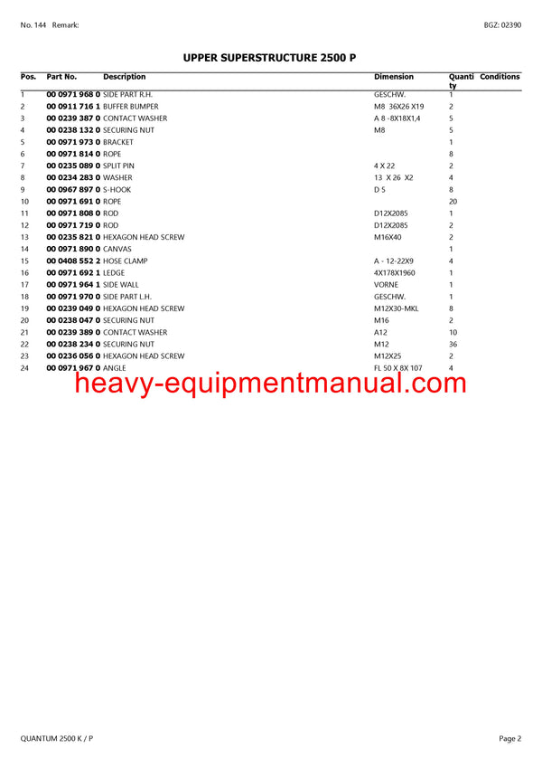 CLAAS QUANTUM 2500 K/P SELF LOADING WAGON PARTS CATALOG MANUAL SN 61302198-61302318