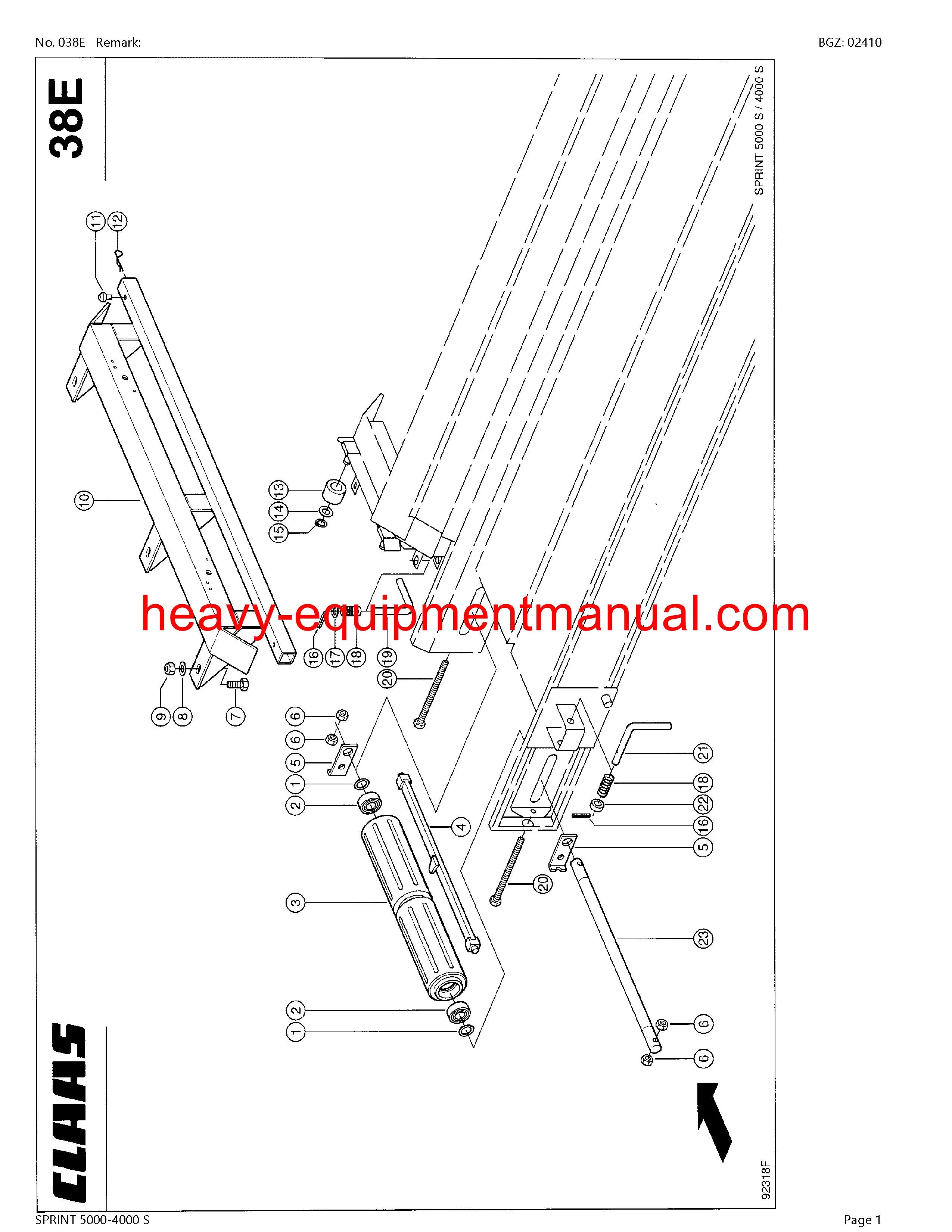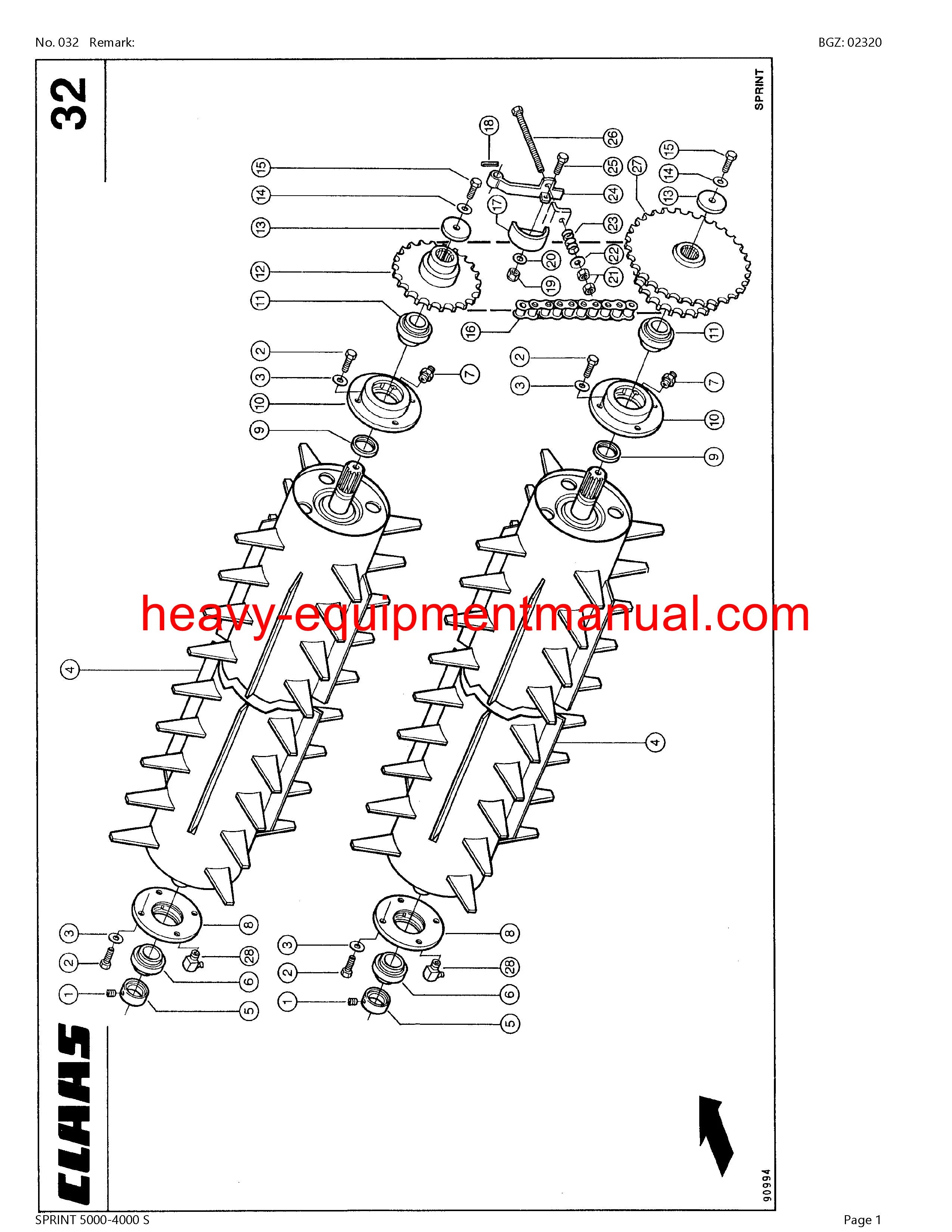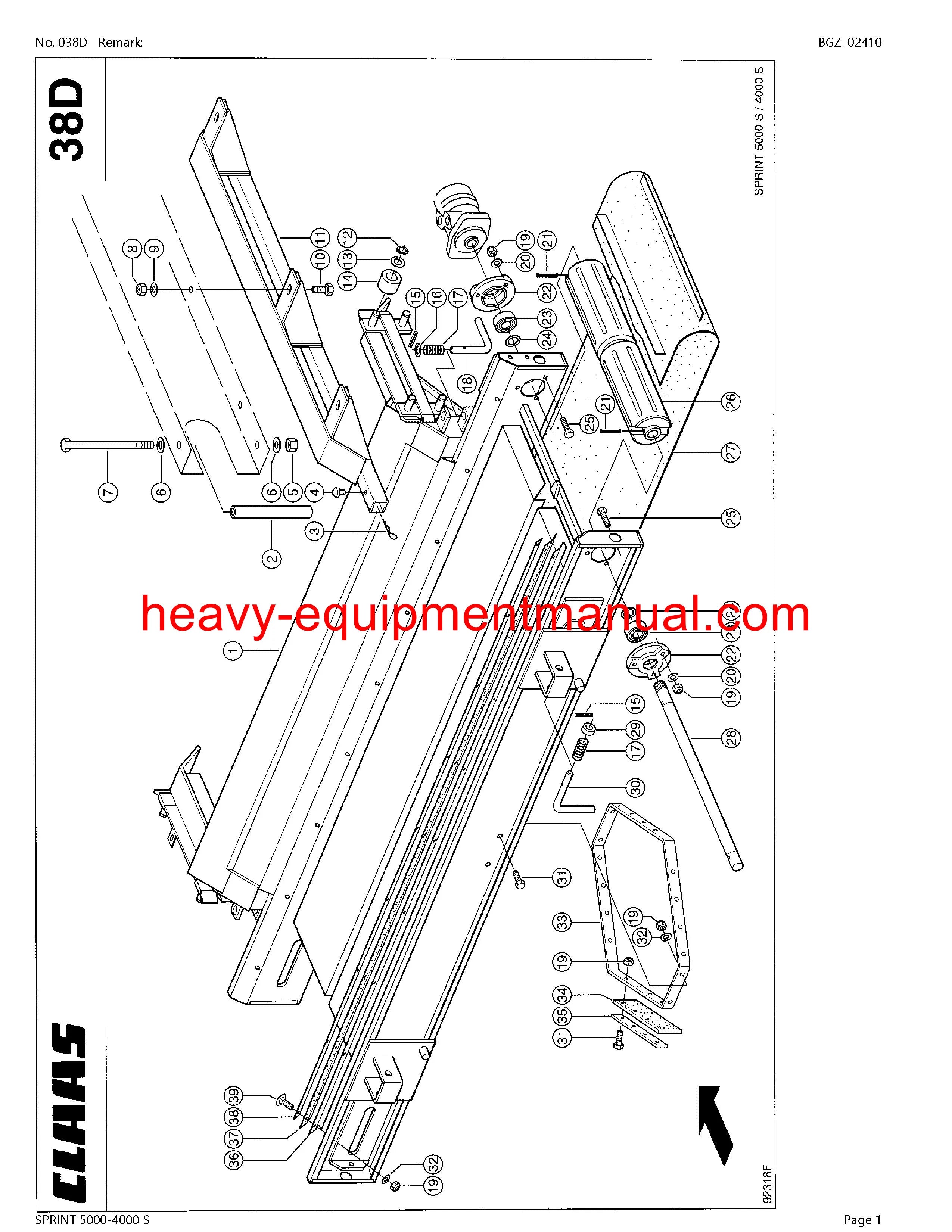 CLAAS SPRINT 5000-4000 S SELF LOADING WAGON PARTS CATALOG MANUAL SN 38801034-38899999
