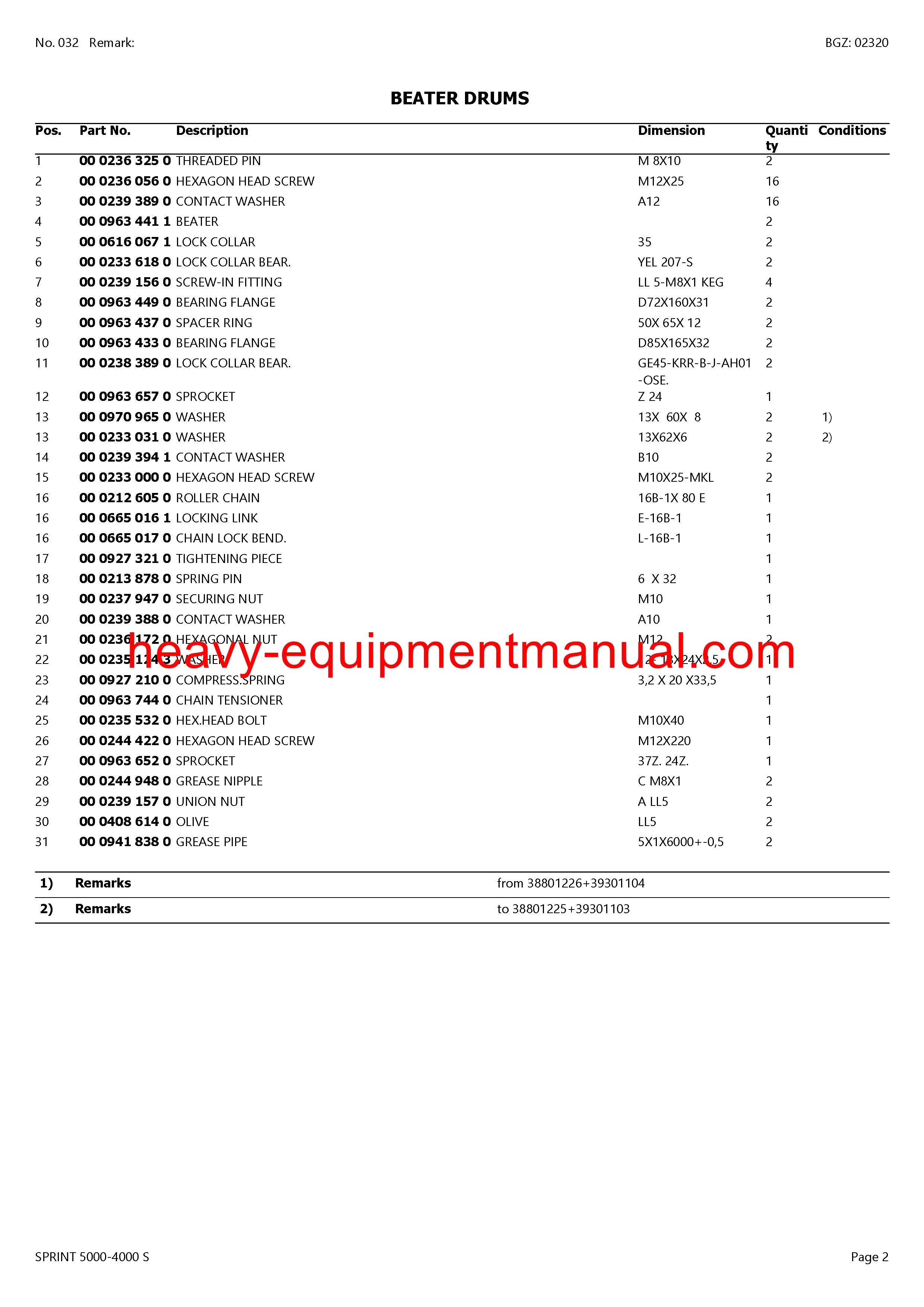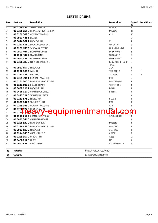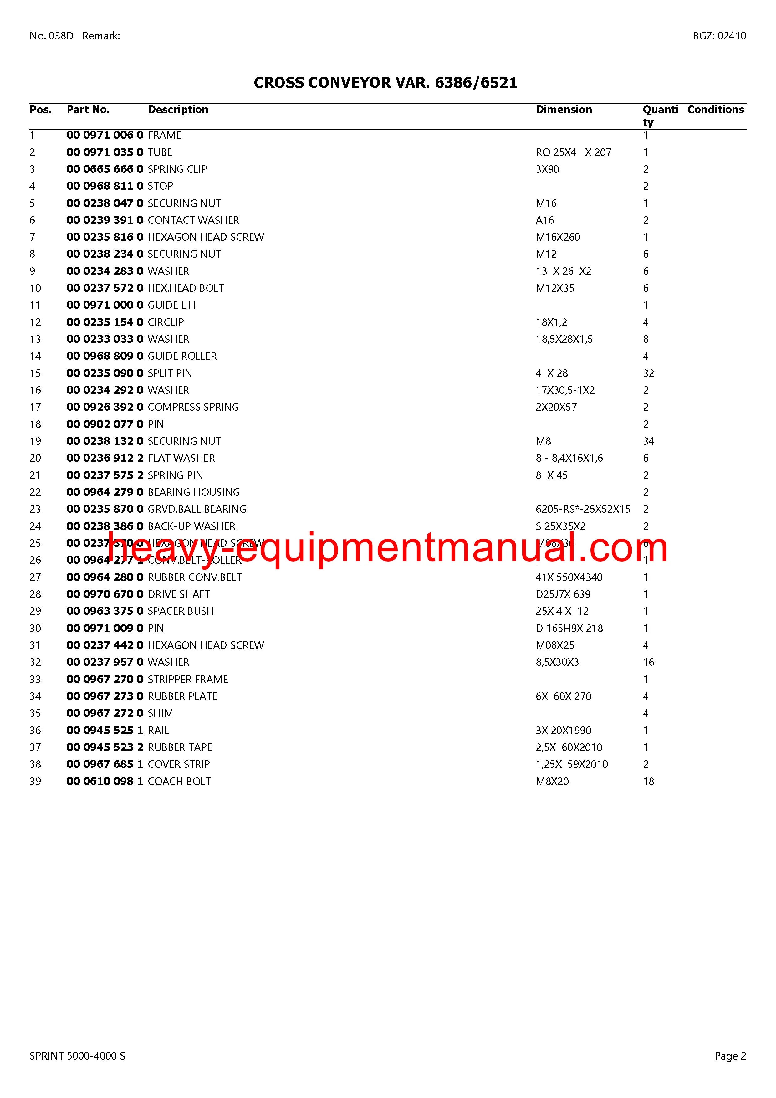 CLAAS SPRINT 5000-4000 S SELF LOADING WAGON PARTS CATALOG MANUAL SN 38801034-38899999