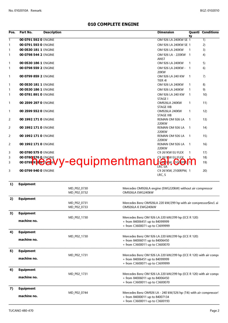 CLAAS TUCANO 480-470 COMBINE PARTS CATALOG MANUAL (SN: 84006011-84099999)