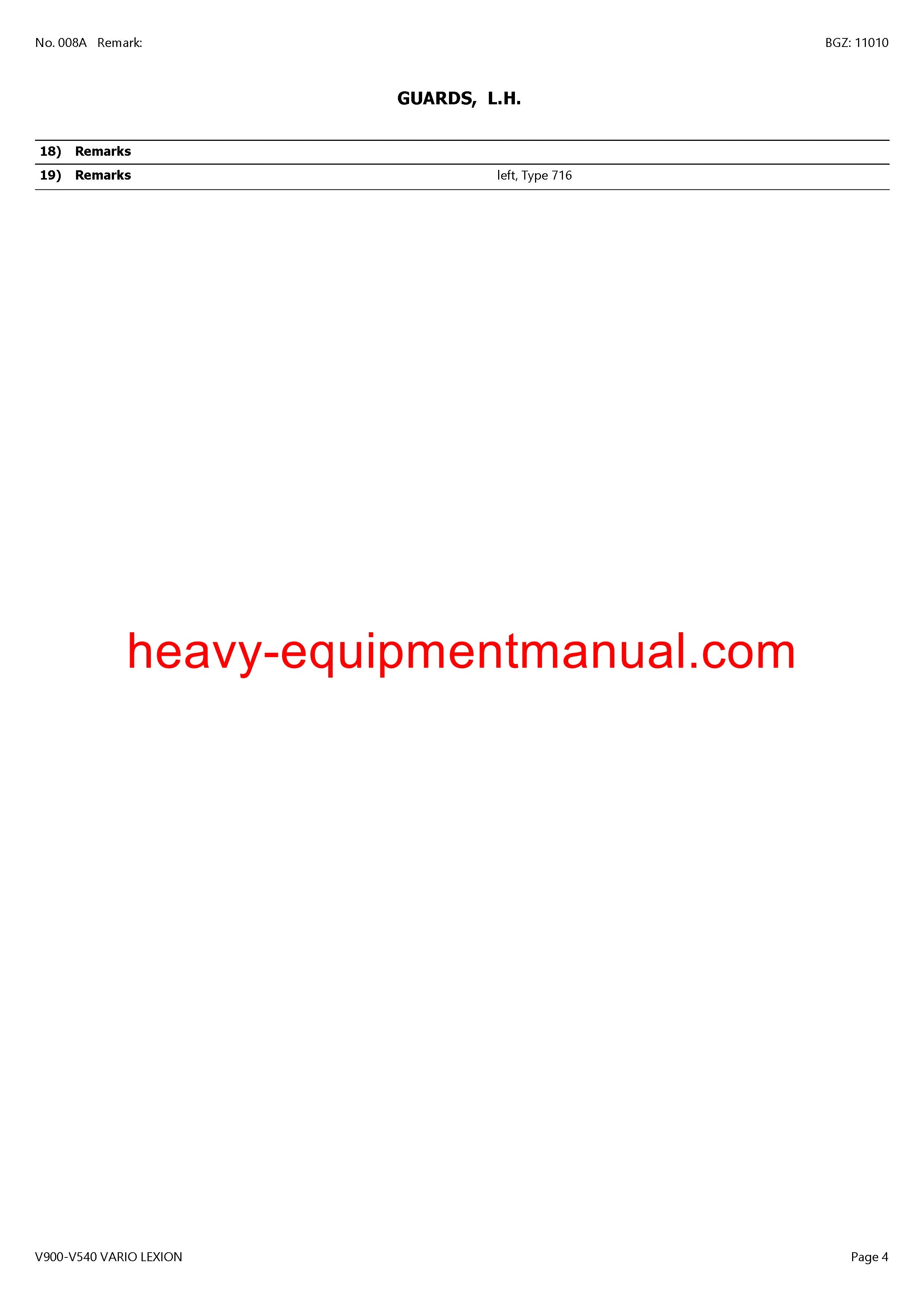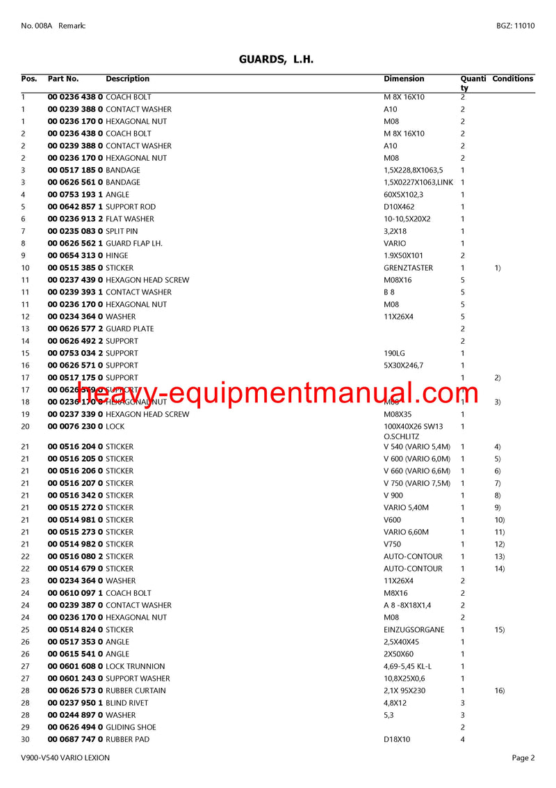 DOWNLOAD CLAAS V900-V540 VARIO LEXION CUTTERBAR PARTS CATALOG MANUAL (SN: 70500011-70599999)