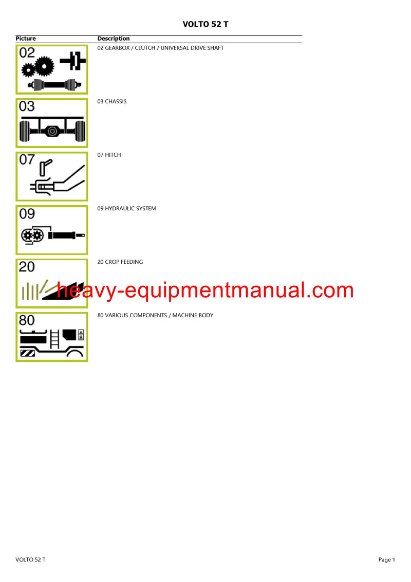 CLAAS VOLTO 52 T TEDDER PARTS CATALOG MANUAL SN 63001661-63099999