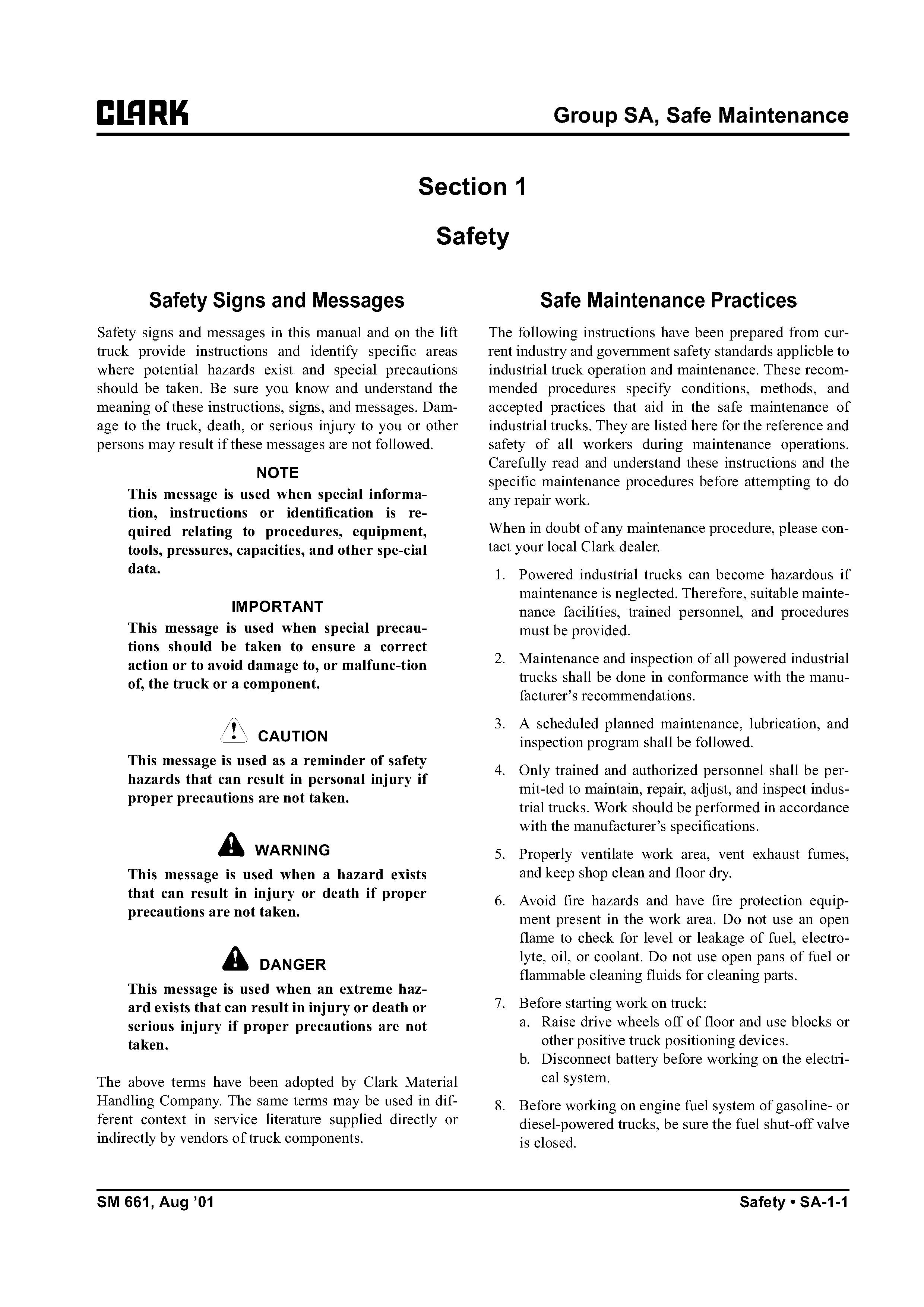 Get Instant Clark C20-30 DLG C20-32C LG (SM-661) Forklift Service Repair Manual -  Download PDF