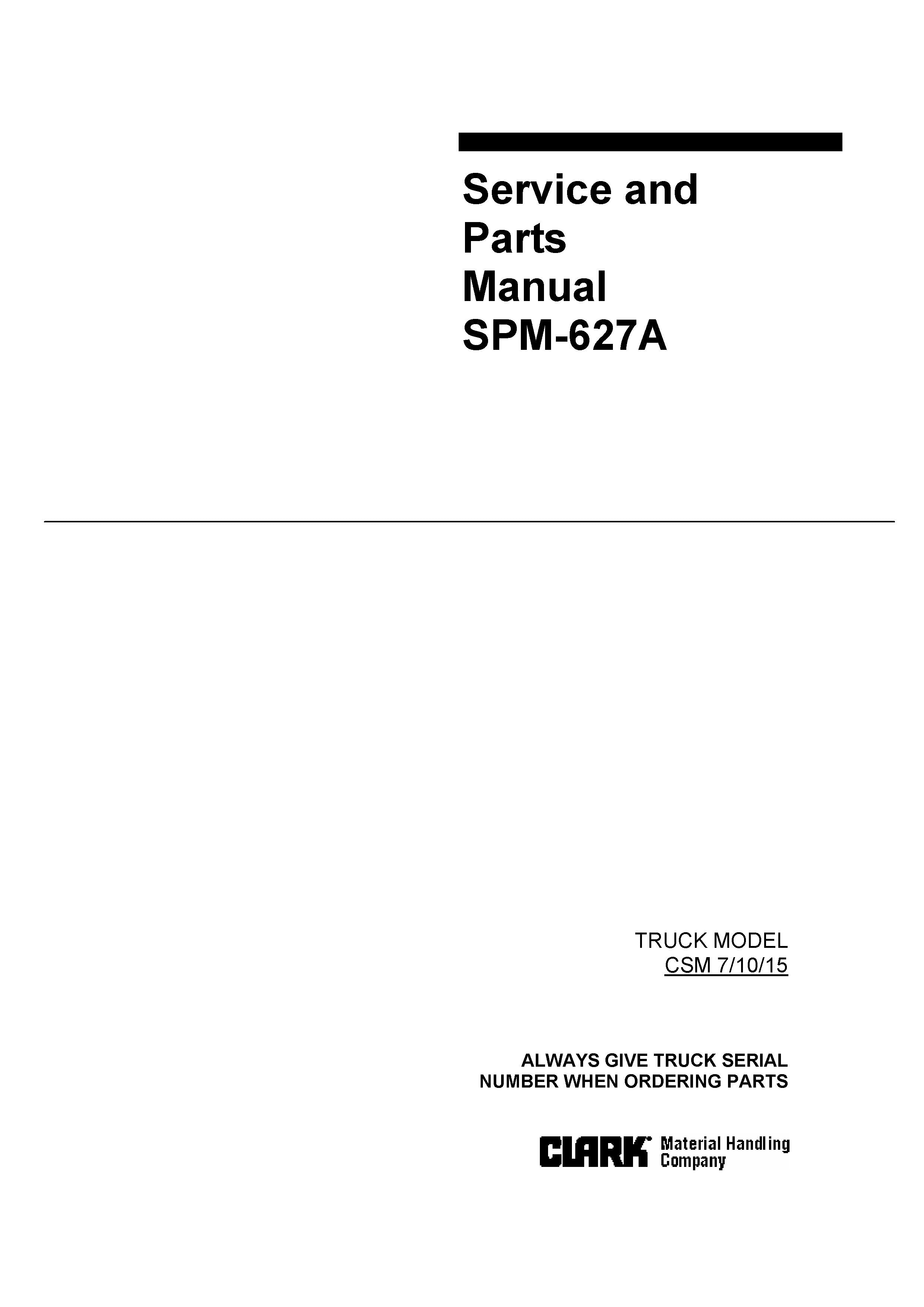 Get Instant Clark CSM 7 10 15 (SPM-627A) Forklift Service and Parts Manual - Download PDF
