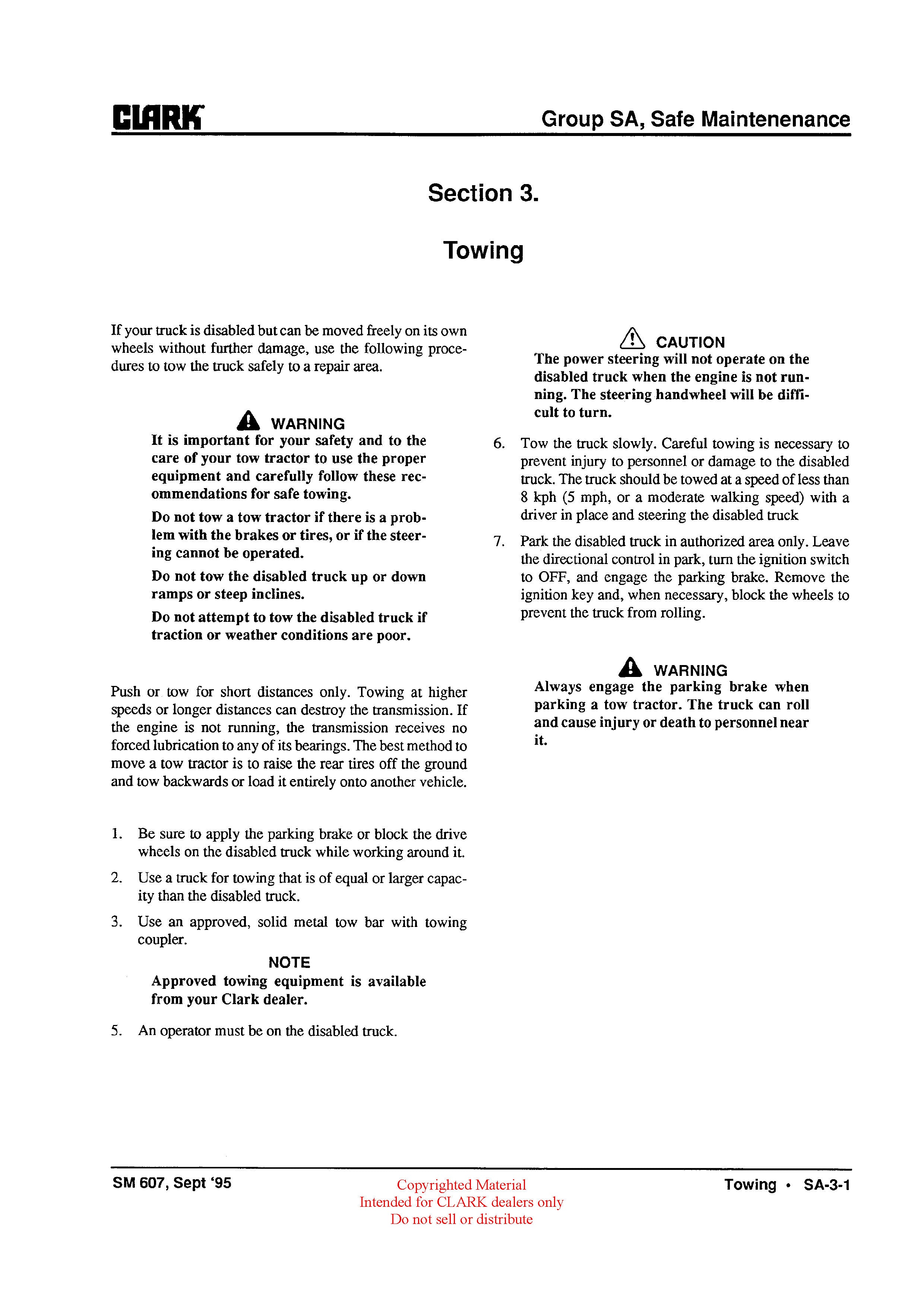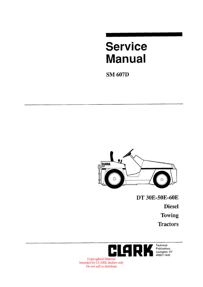Get Instant Clark DT 30E 50E 60E (SM-607D) Forklift Service Repair Manual - Download PDF