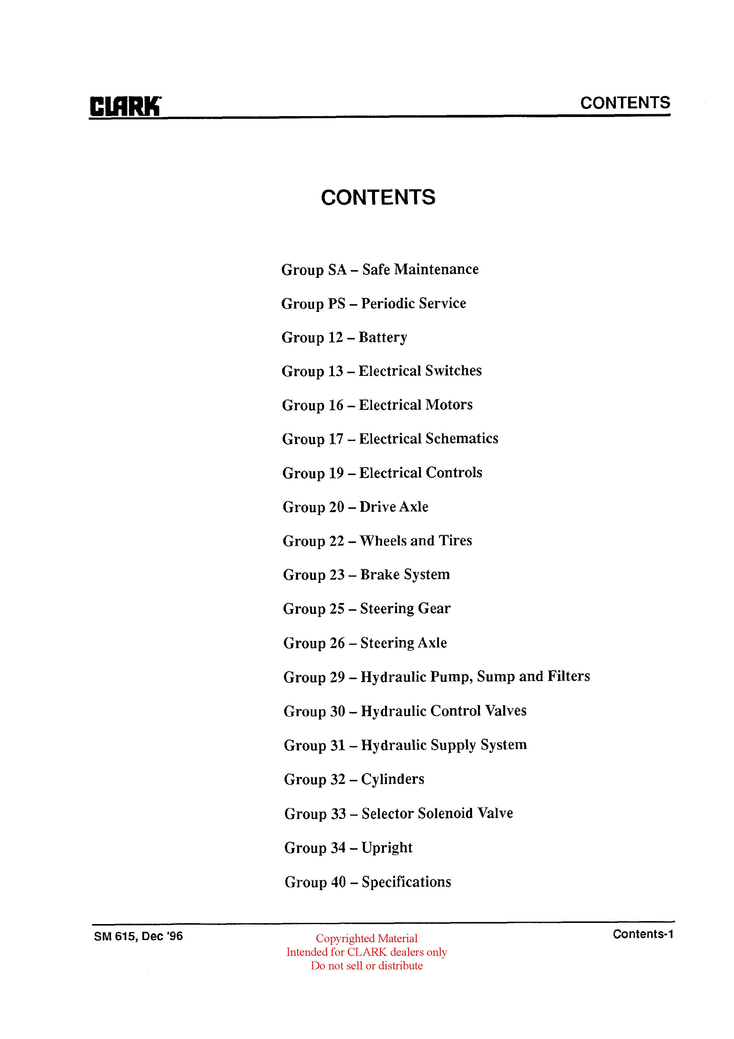 Get Instant Clark ECG 20 32 Genesis (SM-615) Forklift Service Repair Manual - Download PDF