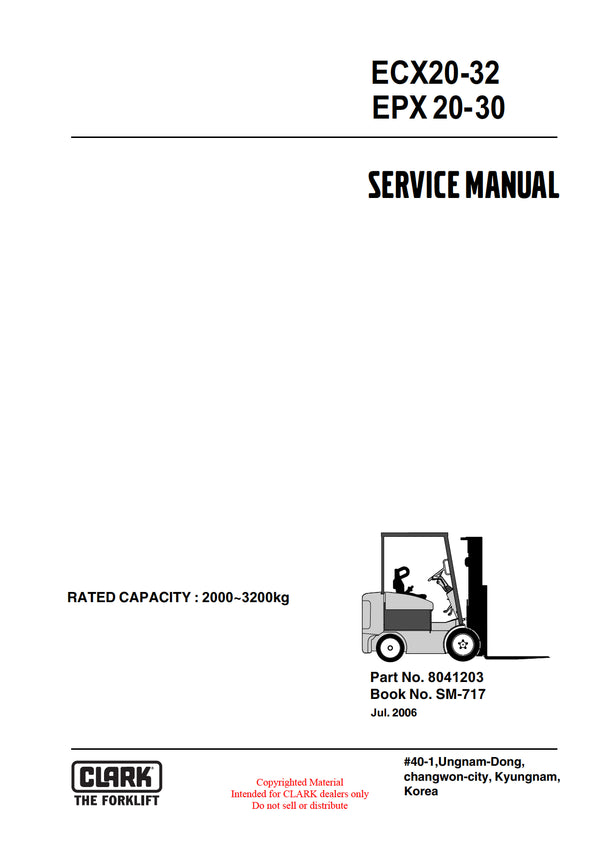 Get Instant Clark ECX 20-32 EPX 20-30 (SM-717) Forklift Service Repair Manual - Download PDF