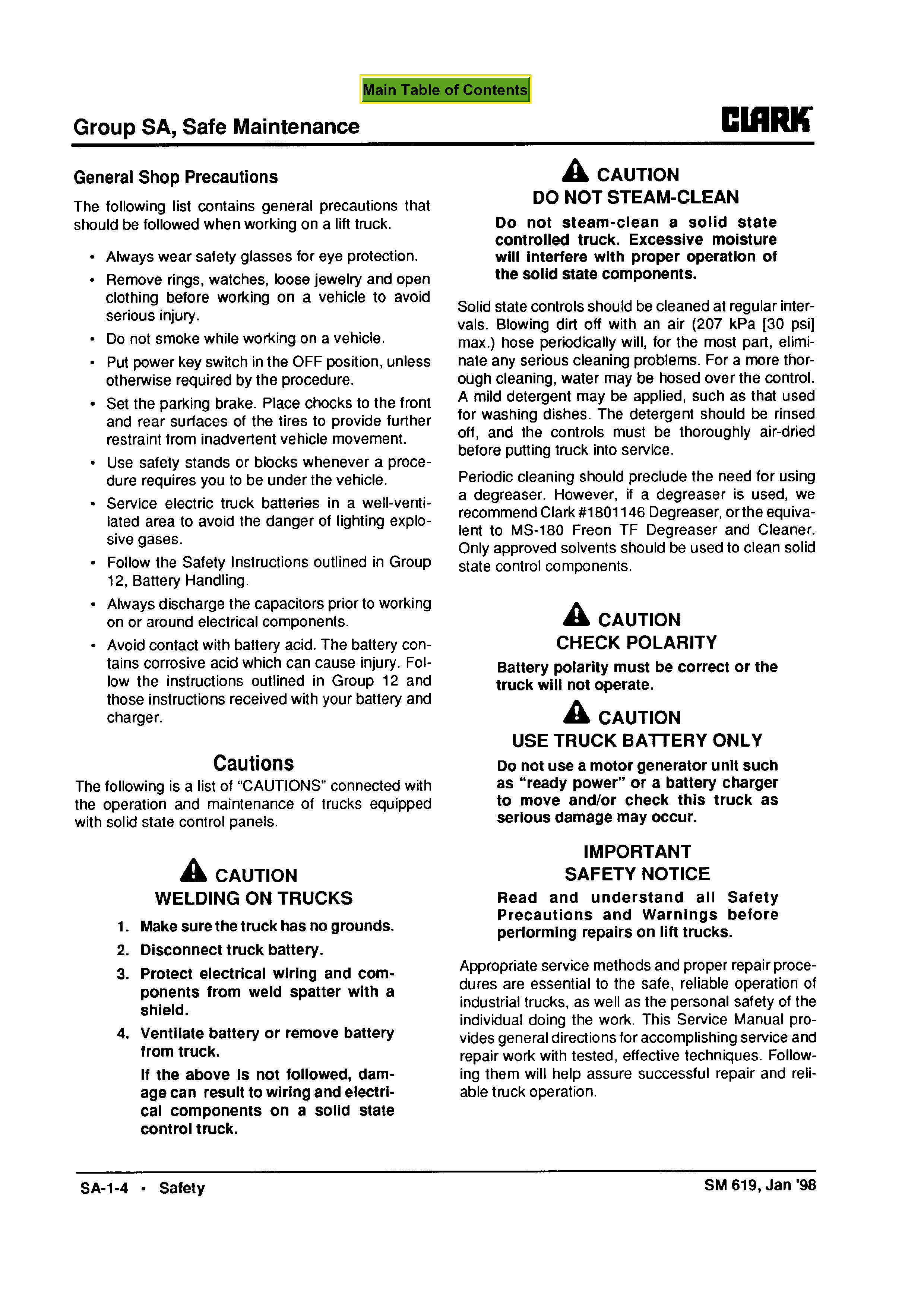 Get Instant  Clark G127 - GP127 - G127E - GP127E (SM-619) Forklift Service Repair Manual - Download PDF
