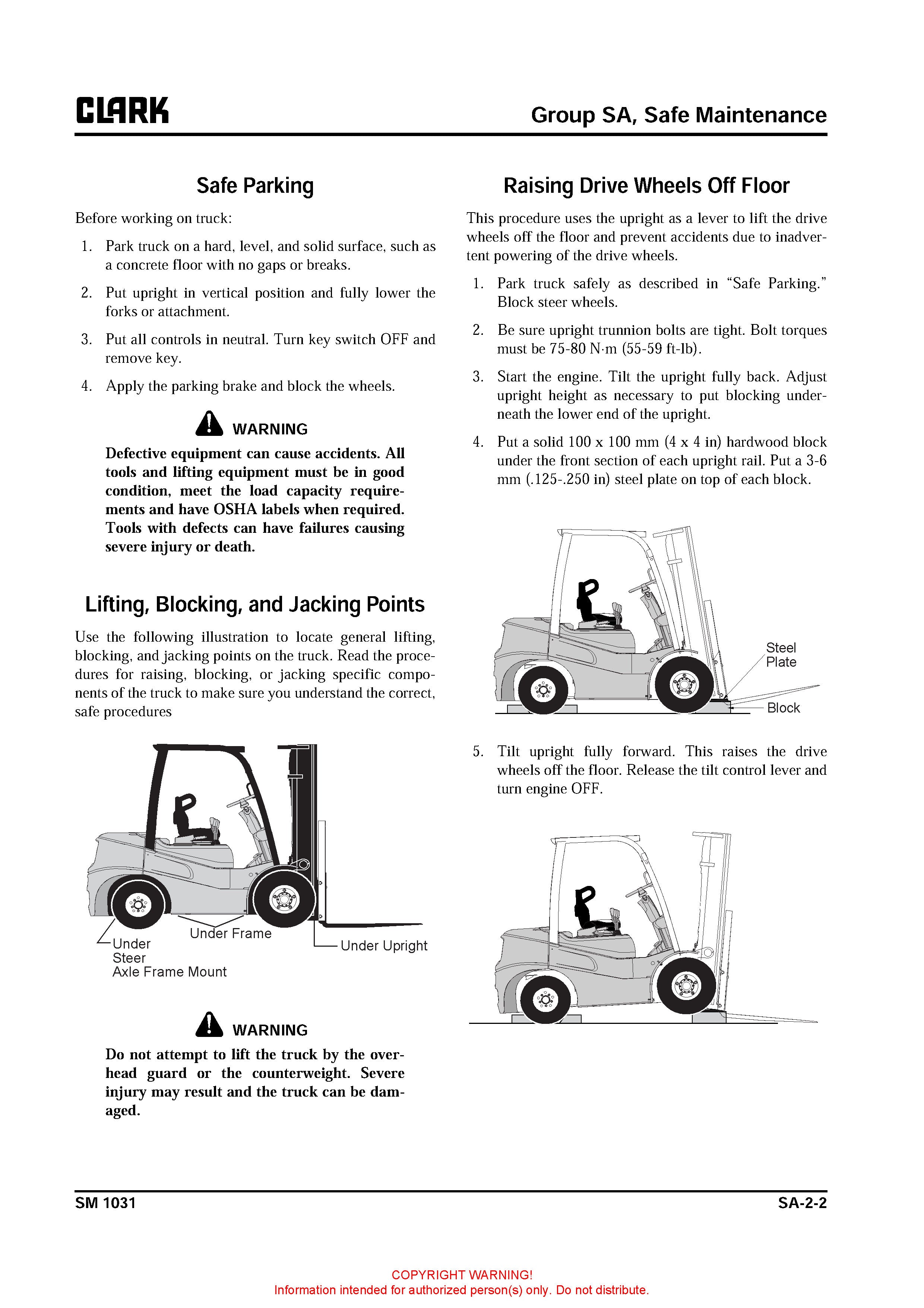 Get Instant Clark SM-1031 Forklift Service Repair Manual - Download PDF