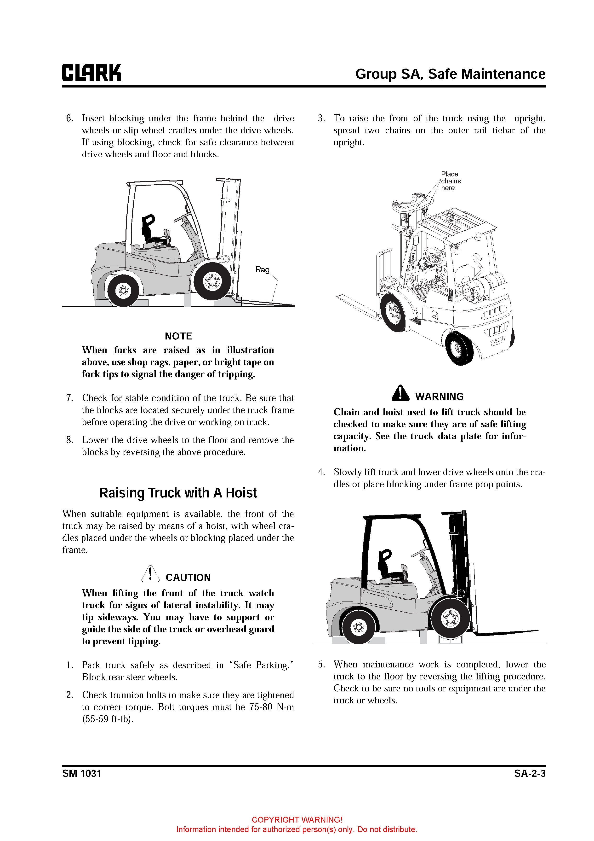 Clark SM-1031 Forklift Service Repair Manual - PDF Download
