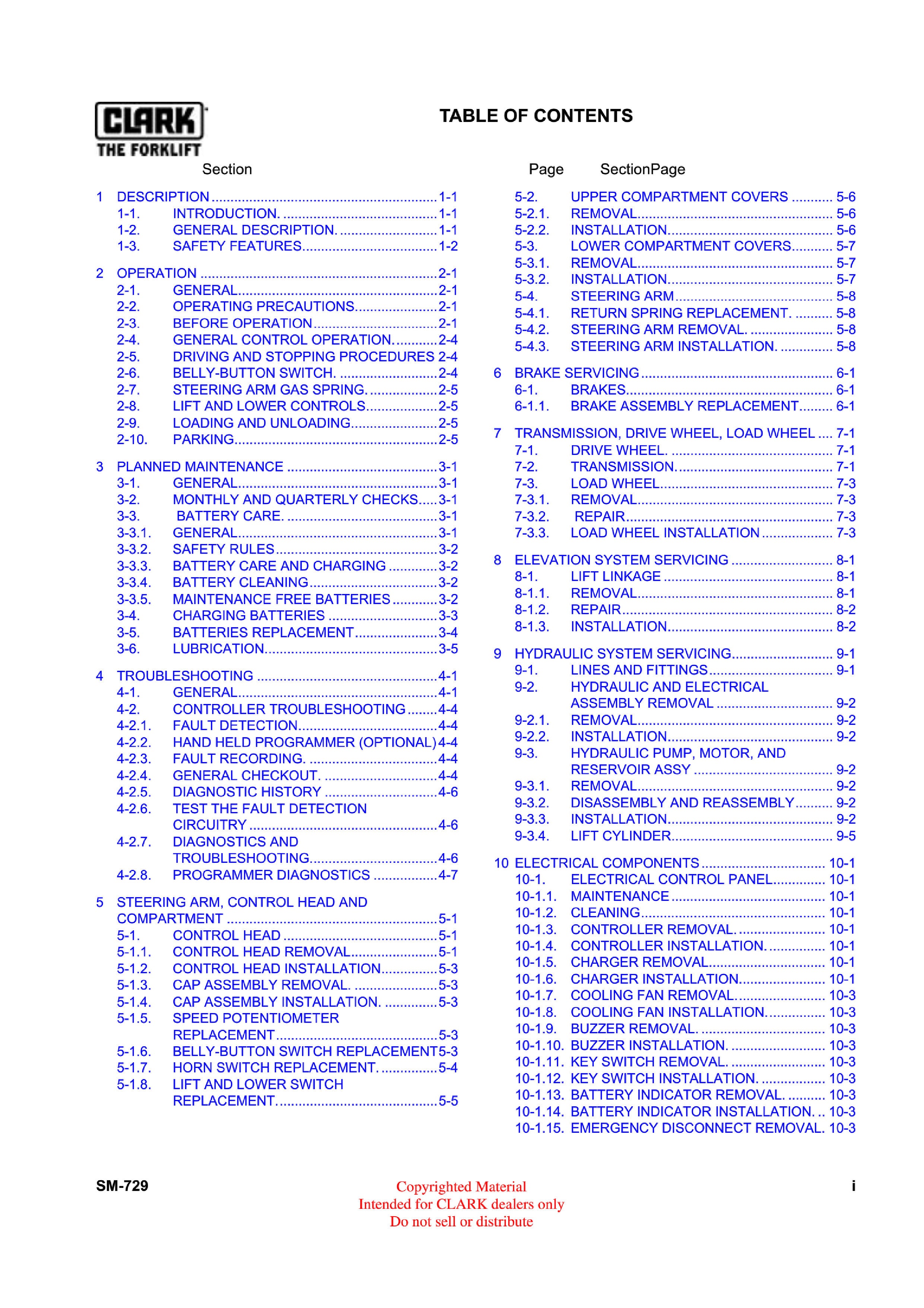 Get Instant Clark WP 30 (SM-729) Forklift Service Manuak Manual - Download PDF