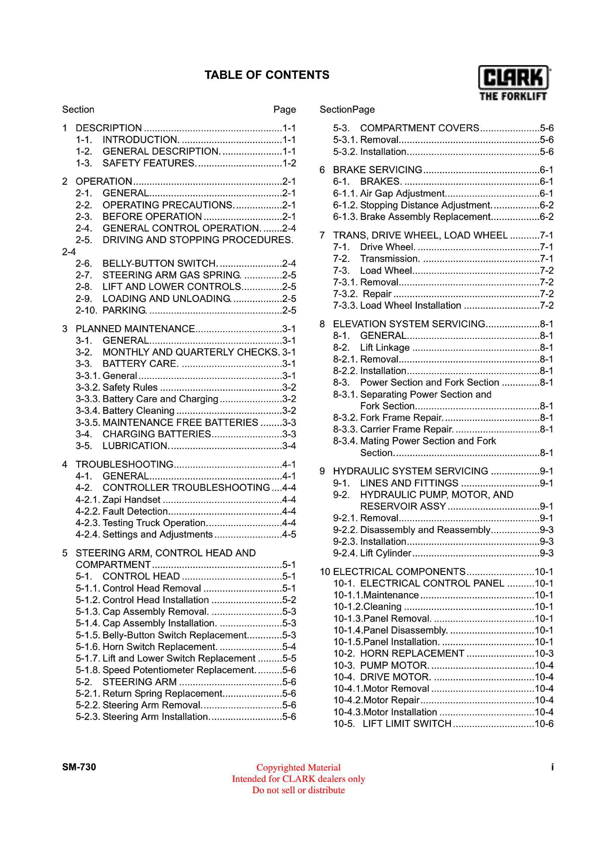 Get Instant Clark WPX 45 (SM-730) Forklift Service Repair Manual - Download PDF
