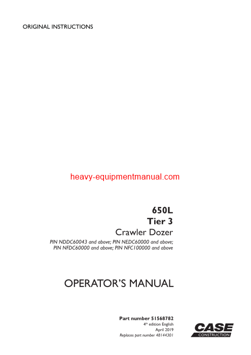 Download Case 650L Tier 3 Crawler Dozer Operator Manual (51568782)