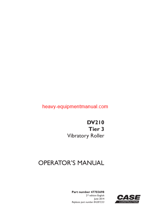 Download Case DV210 Tier 3 Vibratory Roller Operator Manual (47703698)