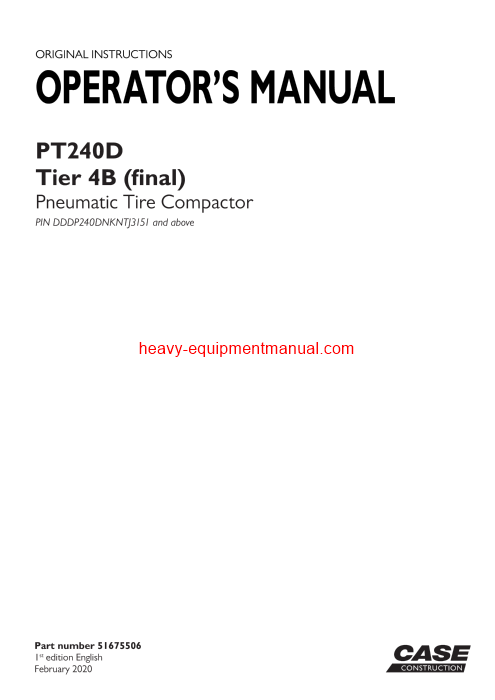 Download Case PT240D Tier 4B (final) Pneumatic Tire Compactor Operator Manual (51675506)