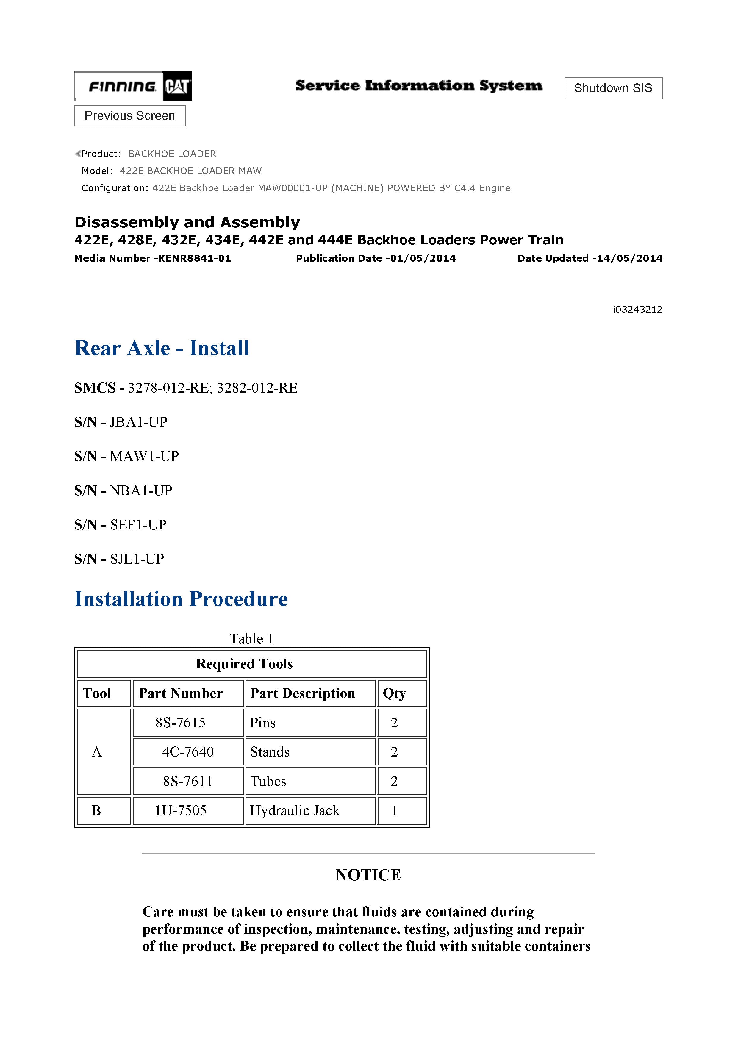 Caterpillar 422E BACKHOE LOADER General Service Information