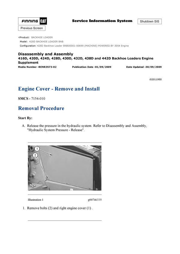 Caterpillar 428D BACKHOE LOADER General Service Information