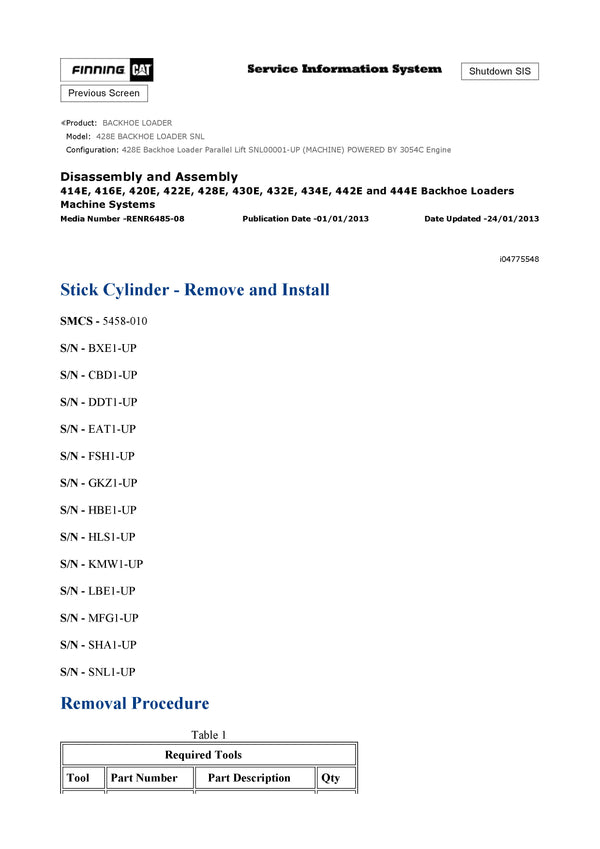 DOWNLOAD CATERPILLAR 428E BACKHOE LOADER SERVICE REPAIR MANUAL SNL