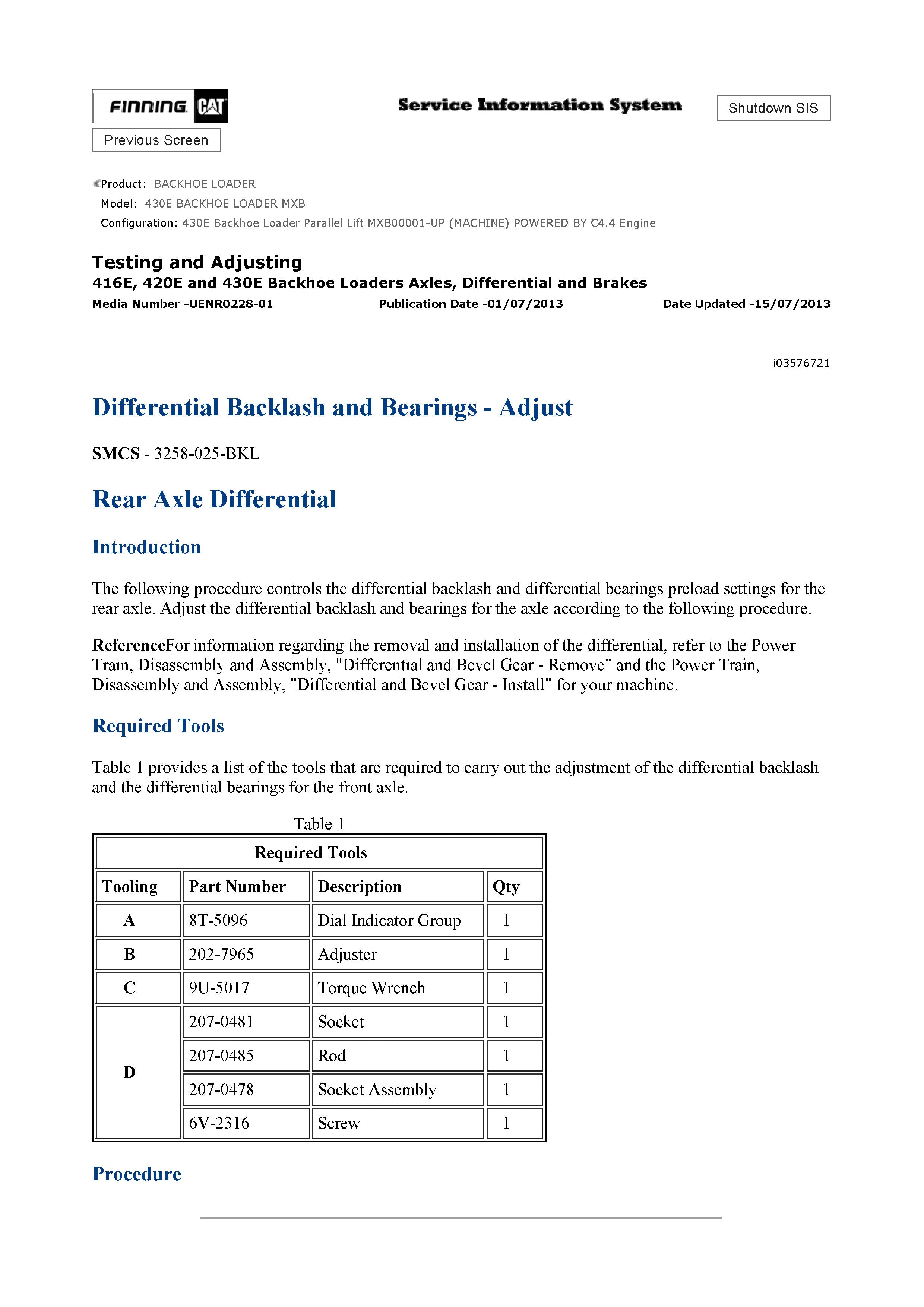Caterpillar 430E BACKHOE LOADER General Service Information