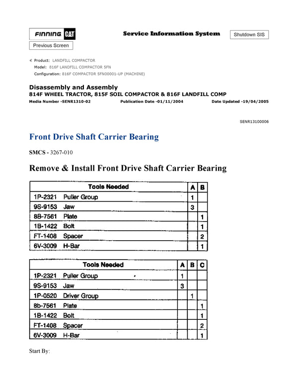 Caterpillar 816F LANDFILL COMPACTOR General Service Information