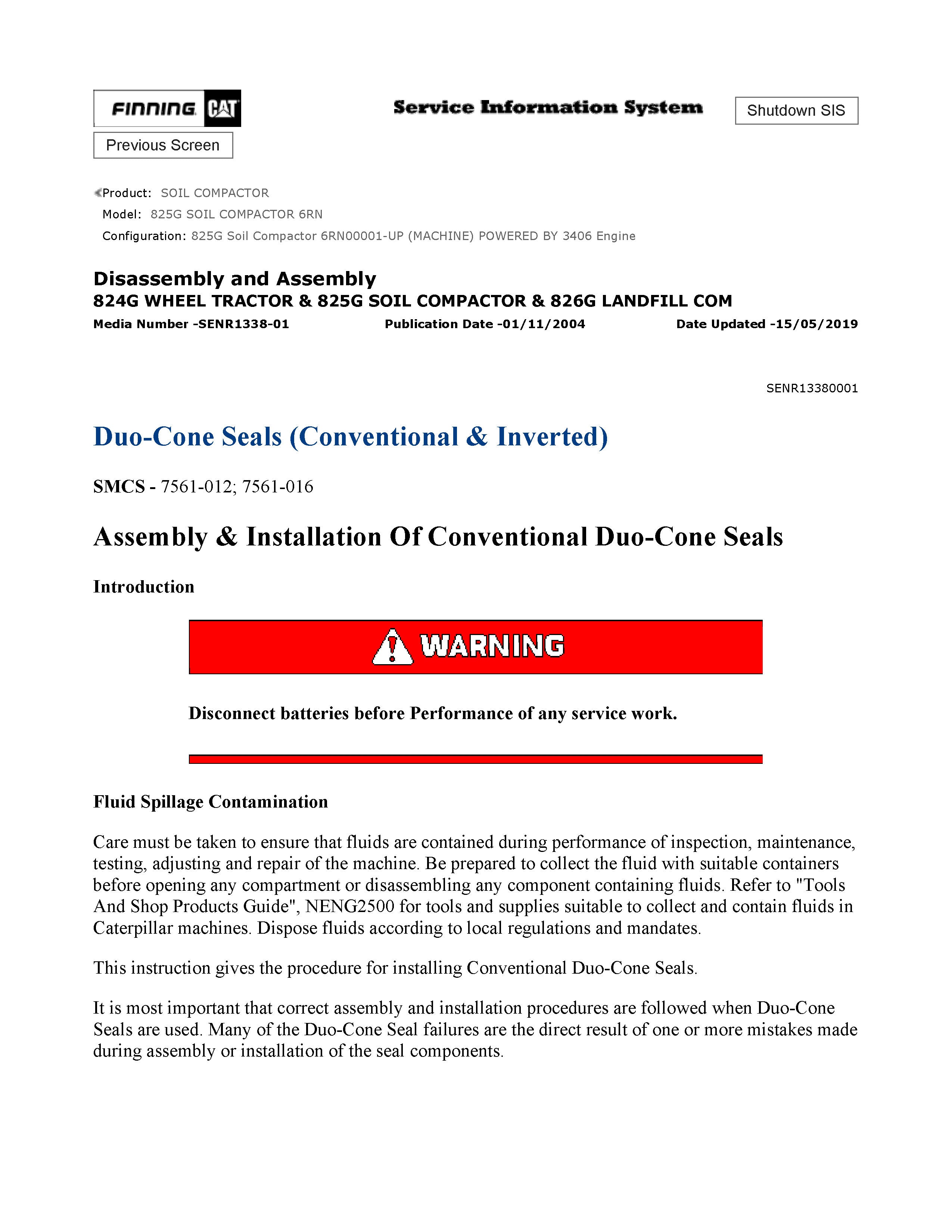 Caterpillar 825G SOIL COMPACTOR General Service Information