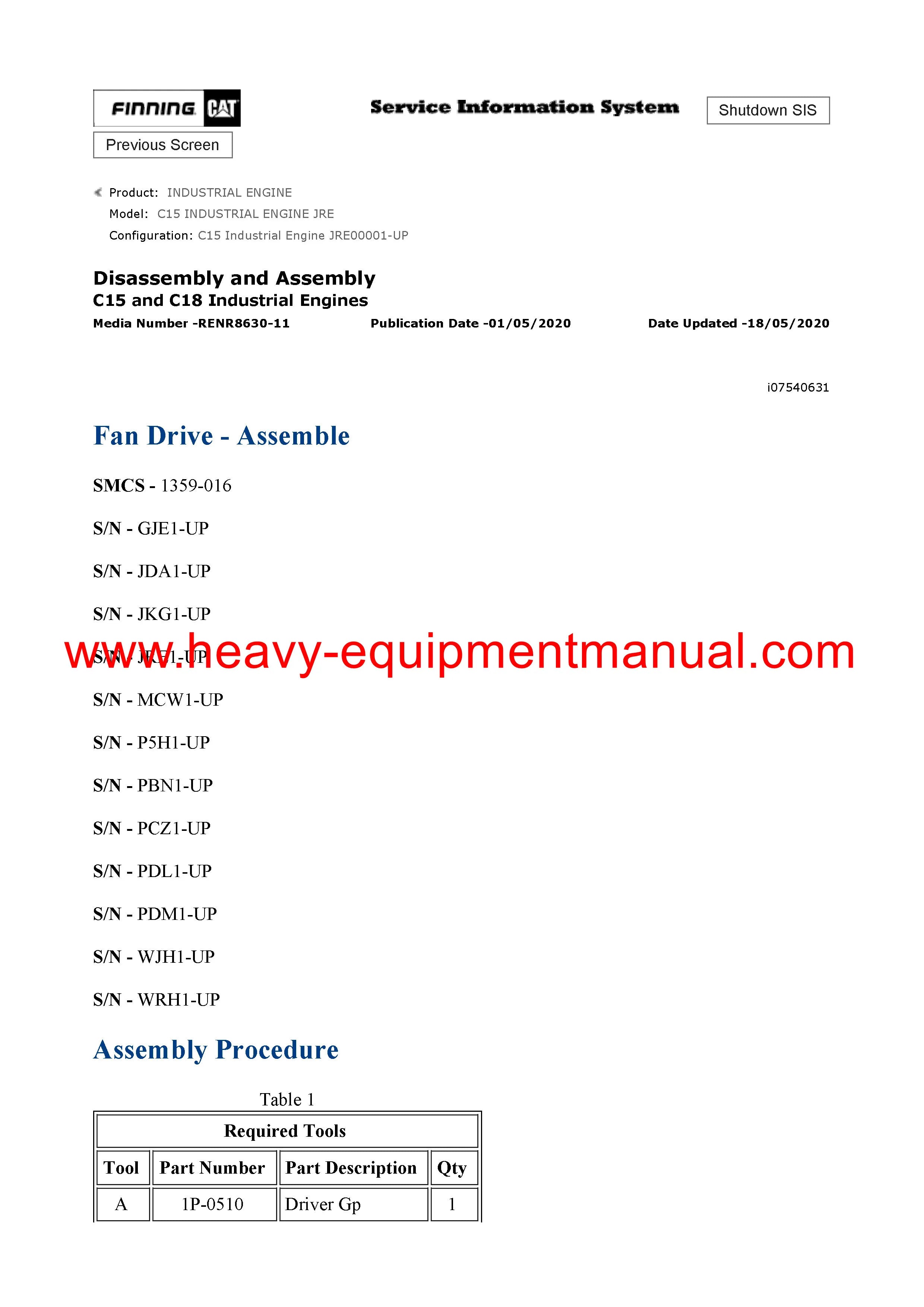 DOWNLOAD CATERPILLAR C15 INDUSTRIAL ENGINE PARTS MANUAL JRE