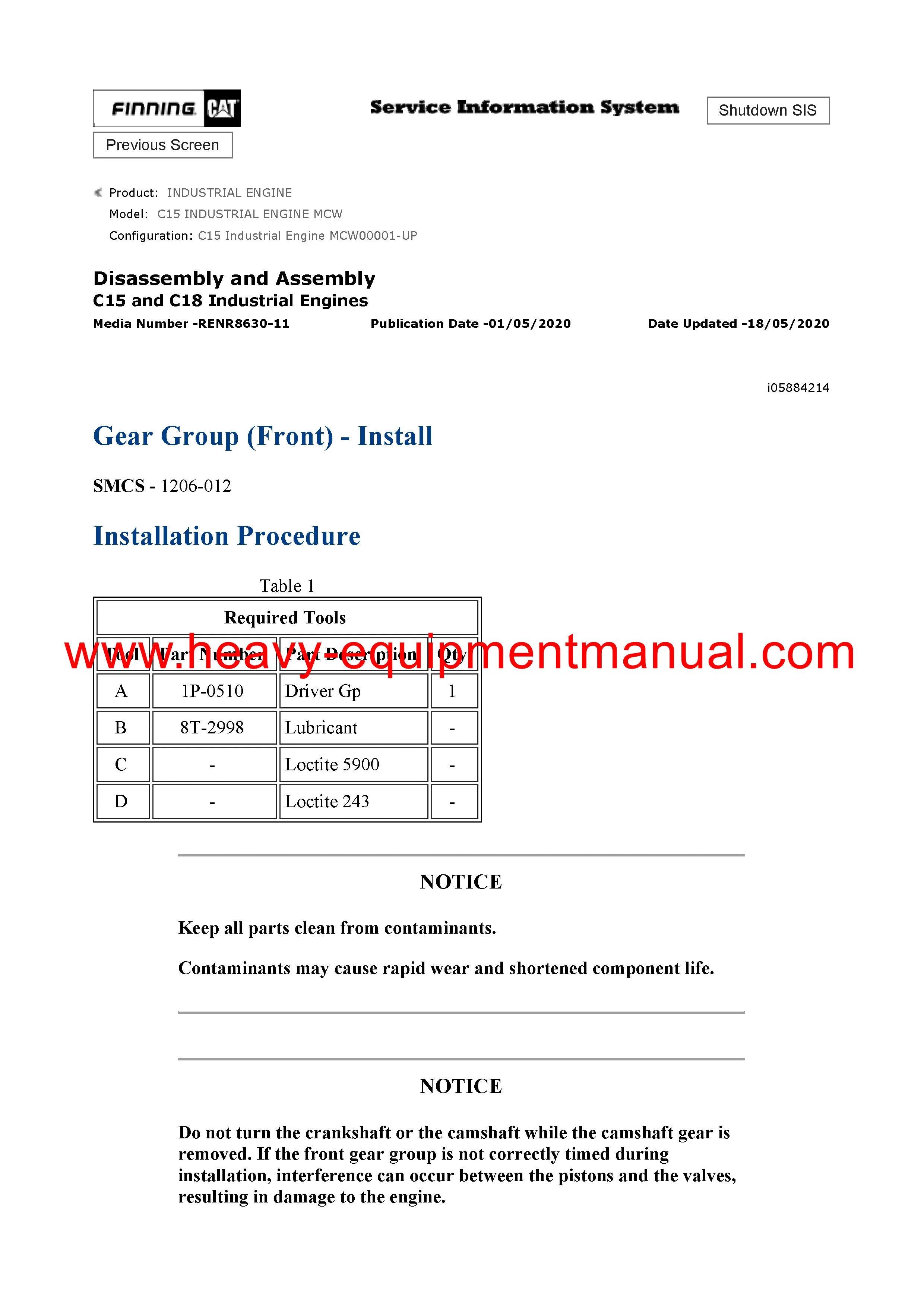 DOWNLOAD CATERPILLAR C15 INDUSTRIAL ENGINE SERVICE REPAIR MANUAL MCW