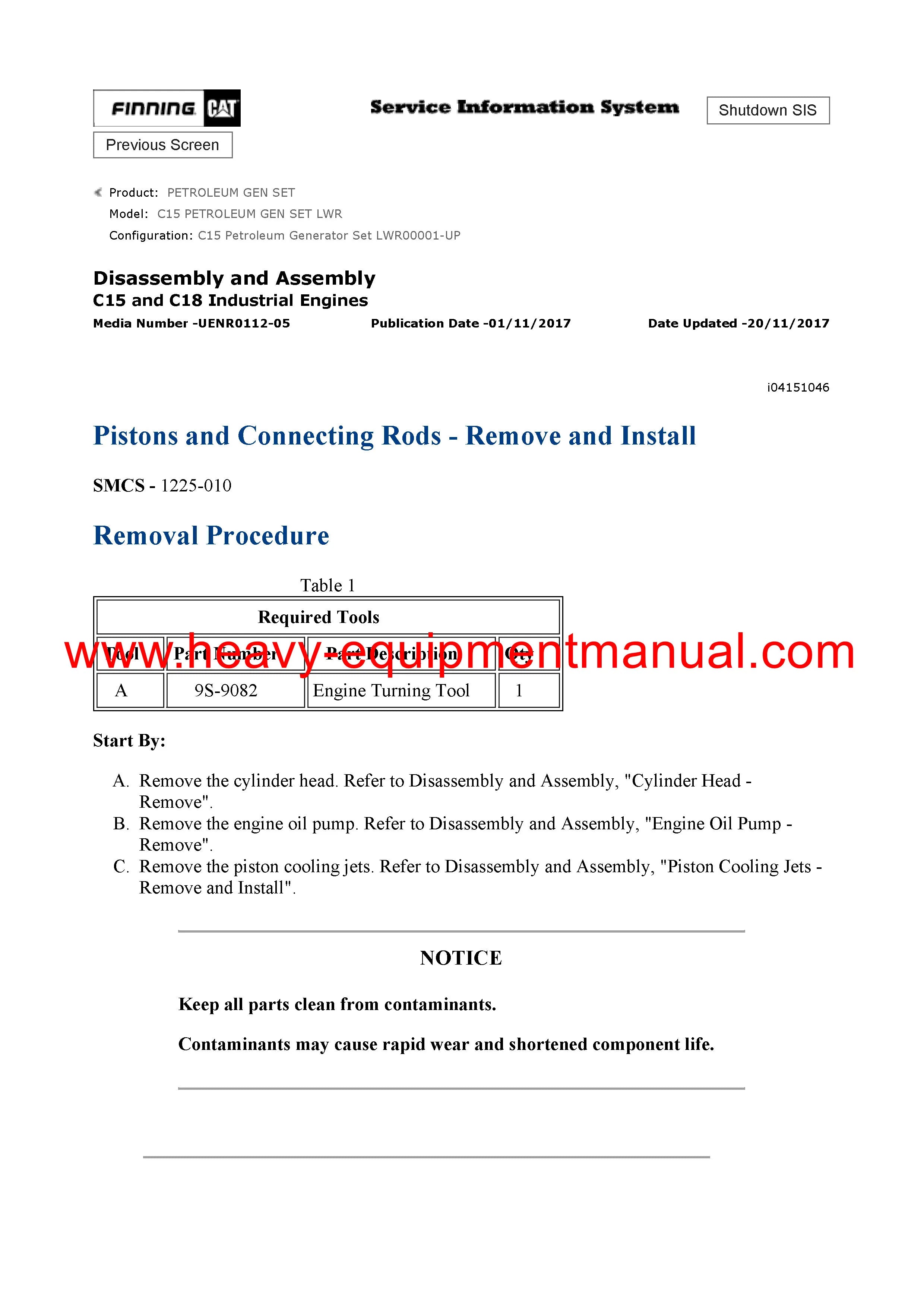 It is Complete Original Factory for Caterpillar C15 PETROLEUM GEN SET. Covers all the service and repair information about Caterpillar C15 PETROLEUM GEN SET. The information in this manual covers everything you need to know when you want to service and repair Caterpillar C15 PETROLEUM GEN SET.
