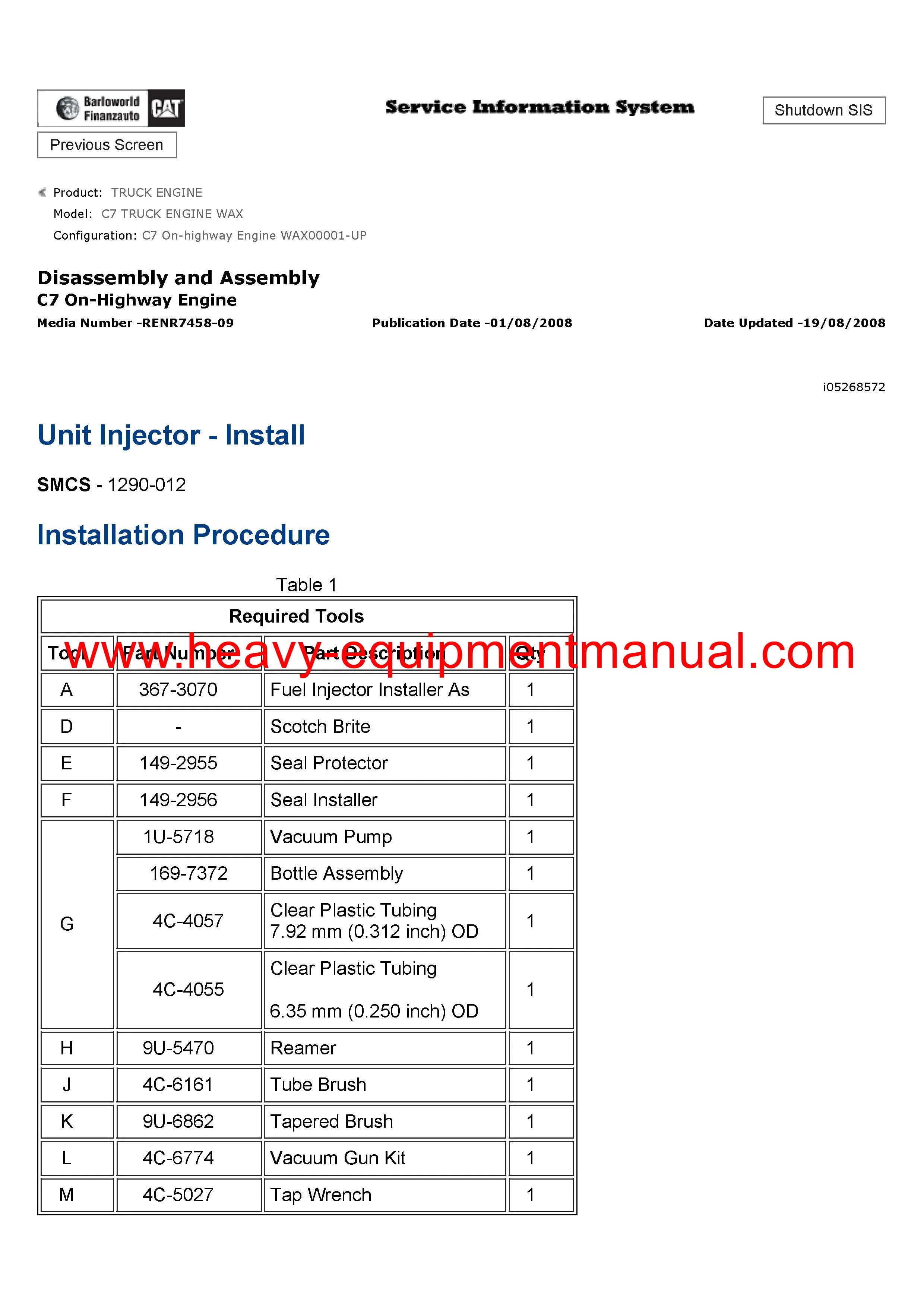 It is Complete Original Factory for Caterpillar C7 TRUCK ENGINE. Covers all the service and repair information about Caterpillar C7 TRUCK ENGINE. The information in this manual covers everything you need to know when you want to service and repair Caterpillar C7 TRUCK ENGINE.