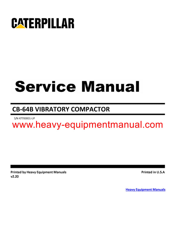 It is Complete Original Factory for Caterpillar CB-64B VIBRATORY COMPACTOR. Covers all the service and repair information about Caterpillar CB-64B VIBRATORY COMPACTOR. The information in this manual covers everything you need to know when you want to service and repair Caterpillar CB-64B VIBRATORY COMPACTOR.