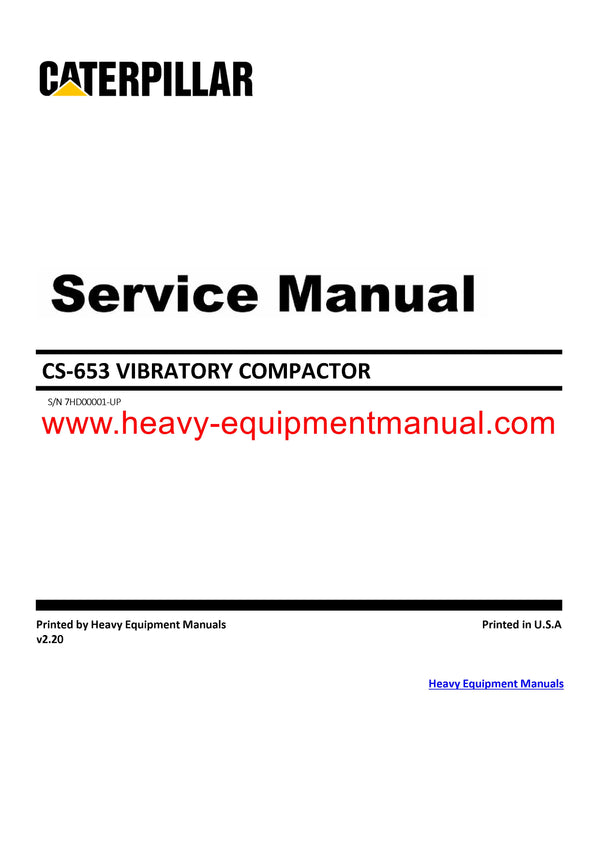 It is Complete Original Factory for Caterpillar CS-653 VIBRATORY COMPACTOR. Covers all the service and repair information about Caterpillar CS-653 VIBRATORY COMPACTOR. The information in this manual covers everything you need to know when you want to service and repair Caterpillar CS-653 VIBRATORY COMPACTOR.