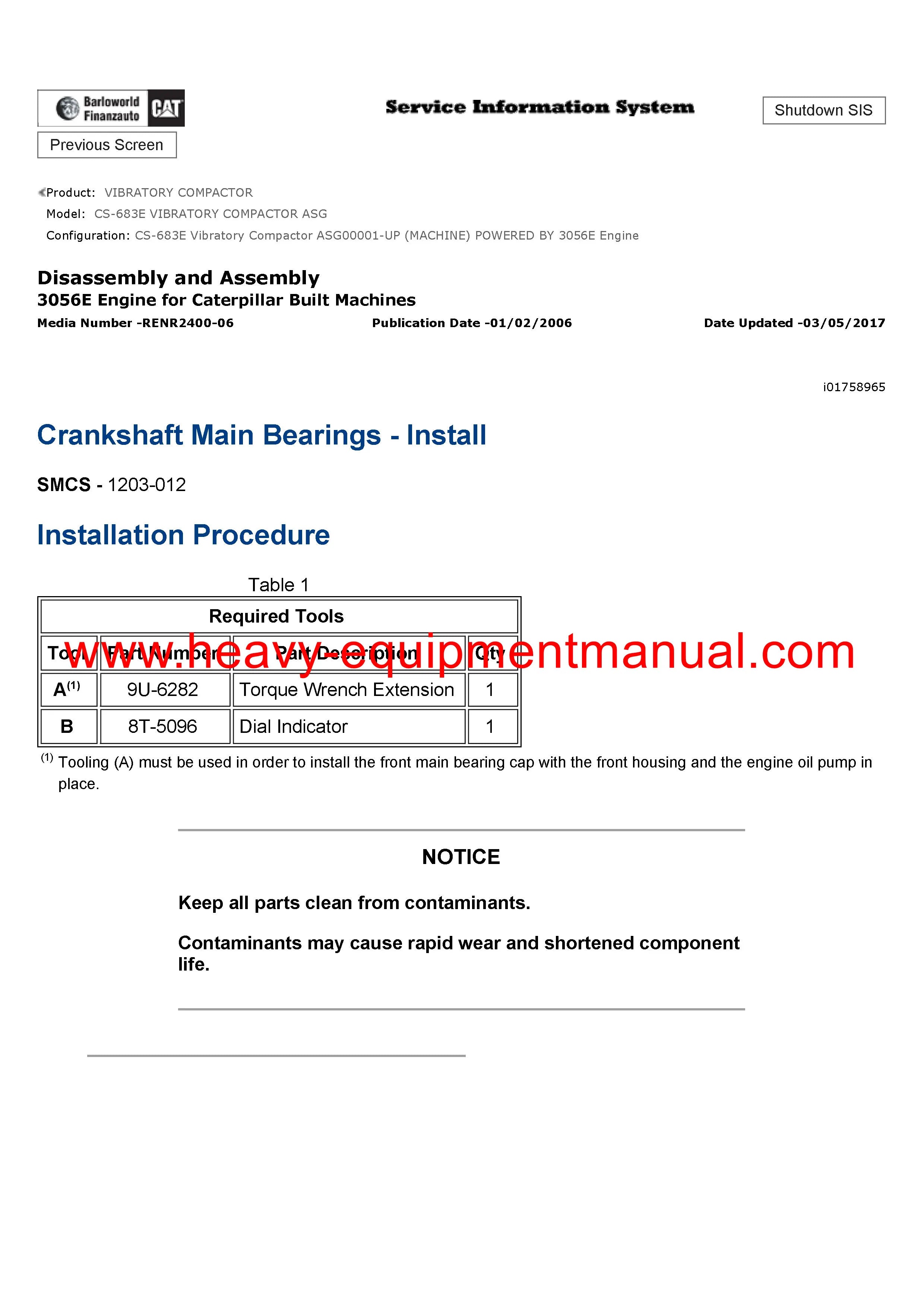 It is Complete Original Factory for Caterpillar CS-683E VIBRATORY COMPACTOR. Covers all the service and repair information about Caterpillar CS-683E VIBRATORY COMPACTOR. The information in this manual covers everything you need to know when you want to service and repair Caterpillar CS-683E VIBRATORY COMPACTOR.
