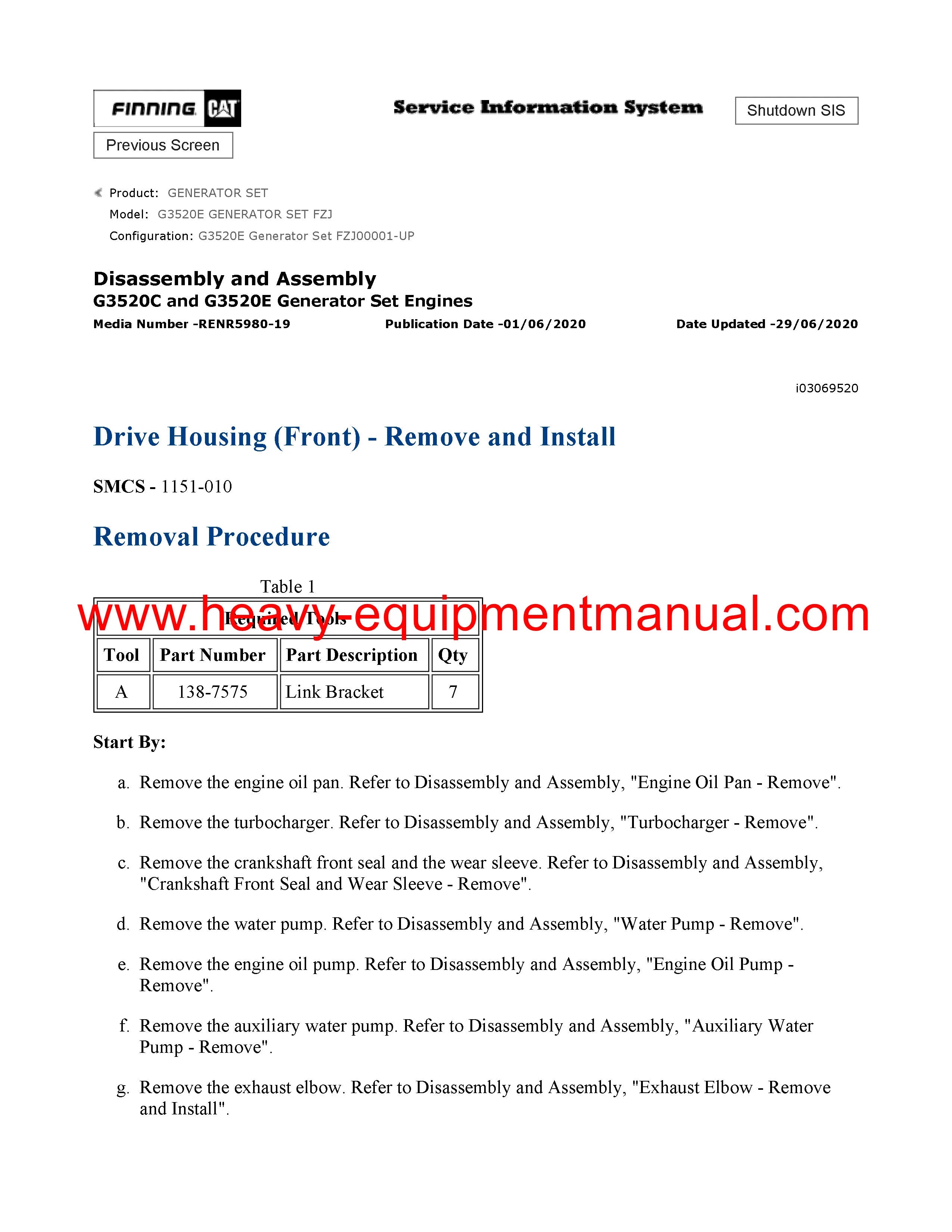 It is Complete Original Factory for Caterpillar G3520E GENERATOR SET covers all the service and repair information about Caterpillar G3520E GENERATOR SET. The information in this manual covers everything you need to know when you want to repair Caterpillar G3520E GENERATOR SET.