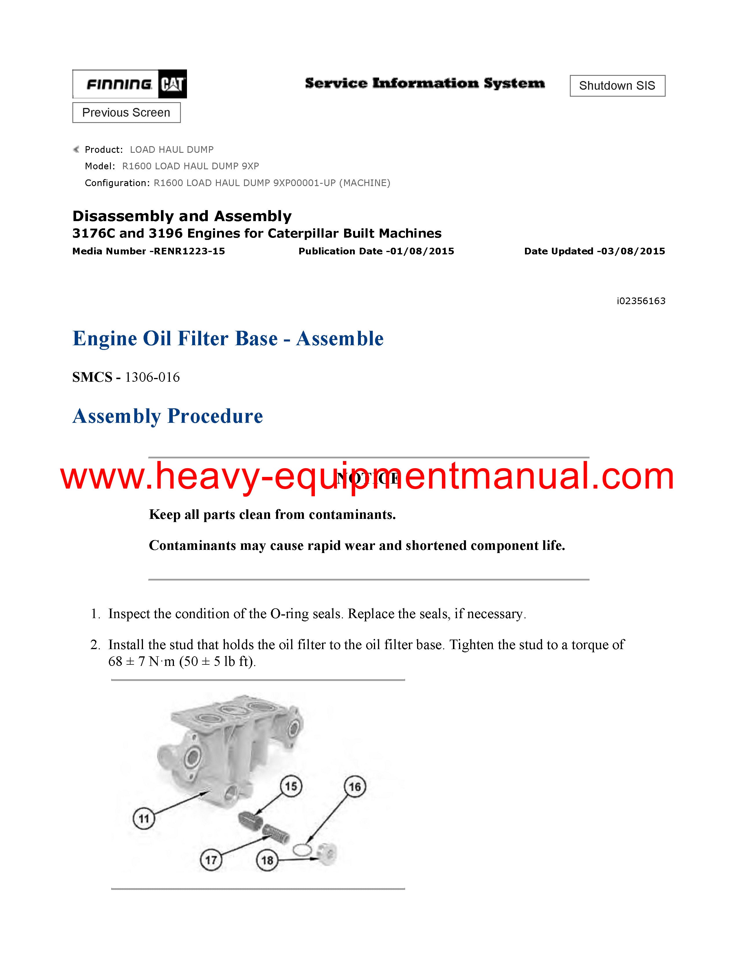 It is Complete Original Factory for Caterpillar R1600 LOAD HAUL DUMP covers all the service and repair information about Caterpillar R1600 LOAD HAUL DUMP. The information in this manual covers everything you need to know when you want to repair Caterpillar R1600 LOAD HAUL DUMP.