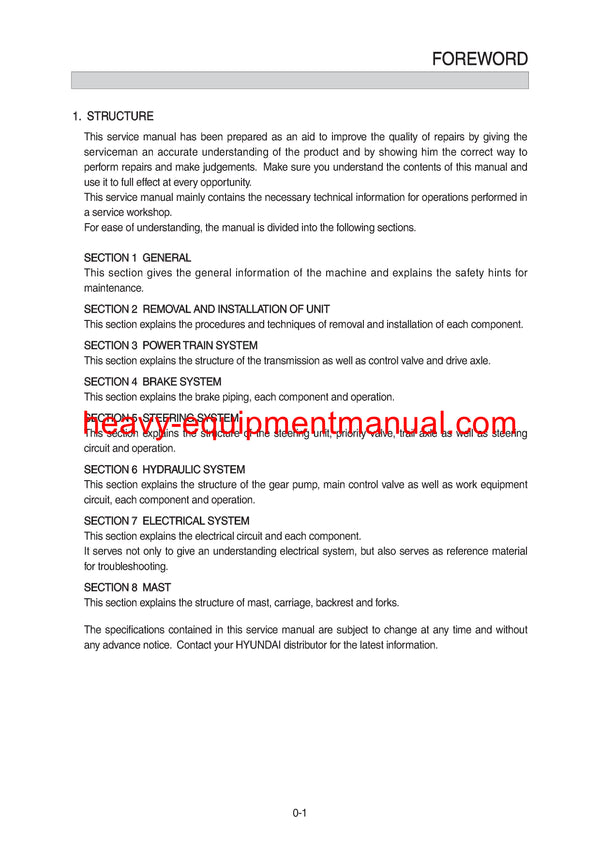 It is Complete Original Factory for Hyundai 10/13/15BTR-9 Forklift Service Manual covers all the service and repair information about Hyundai 10/13/15BTR-9 Forklift. The information in this manual covers everything you need to know when you want to repair Hyundai 10/13/15BTR-9 Forklift.