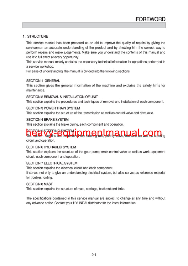 It is Complete Original Factory for Hyundai 15/18/20D-9S Forklift Truck Service Manual covers all the service and repair information about Hyundai 15/18/20D-9S Forklift Truck. The information in this manual covers everything you need to know when you want to repair Hyundai 15/18/20D-9S Forklift Truck.