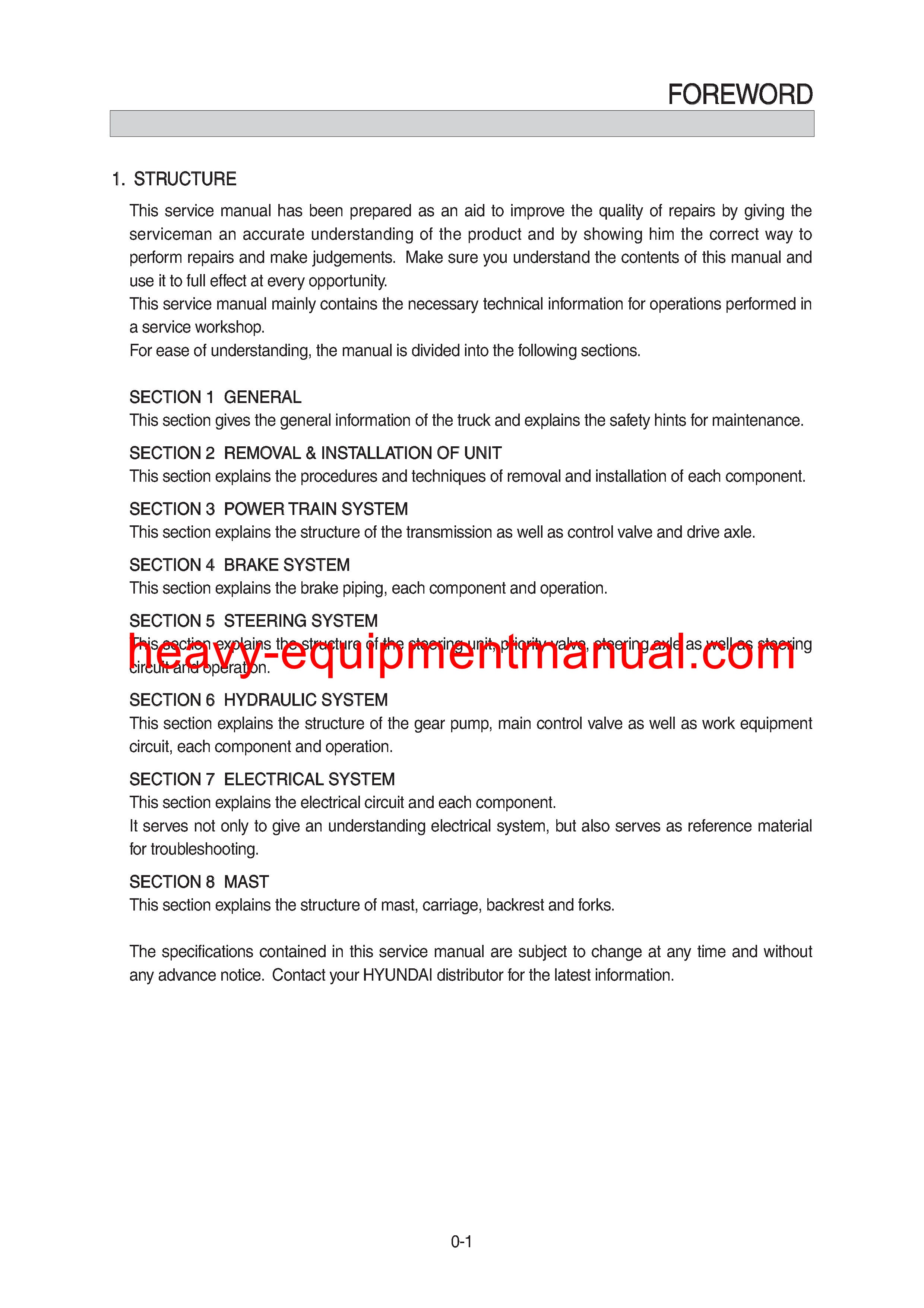 It is Complete Original Factory for Hyundai 35/40/45D-9F,50DA-9F Forklift Truck Service Manual covers all the service and repair information about Hyundai 35/40/45D-9F,50DA-9F Forklift Truck. The information in this manual covers everything you need to know when you want to repair Hyundai 35/40/45D-9F,50DA-9F Forklift Truck.