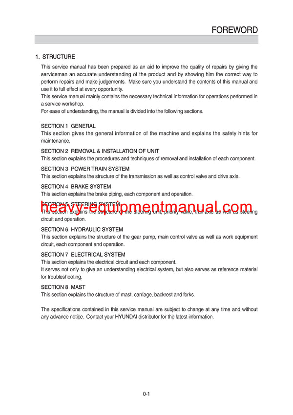 It is Complete Original Factory for Hyundai 50/60/70D-7A Forklift Truck Service Manual covers all the service and repair information about Hyundai 50/60/70D-7A Forklift Truck. The information in this manual covers everything you need to know when you want to repair Hyundai 50/60/70D-7A Forklift Truck.