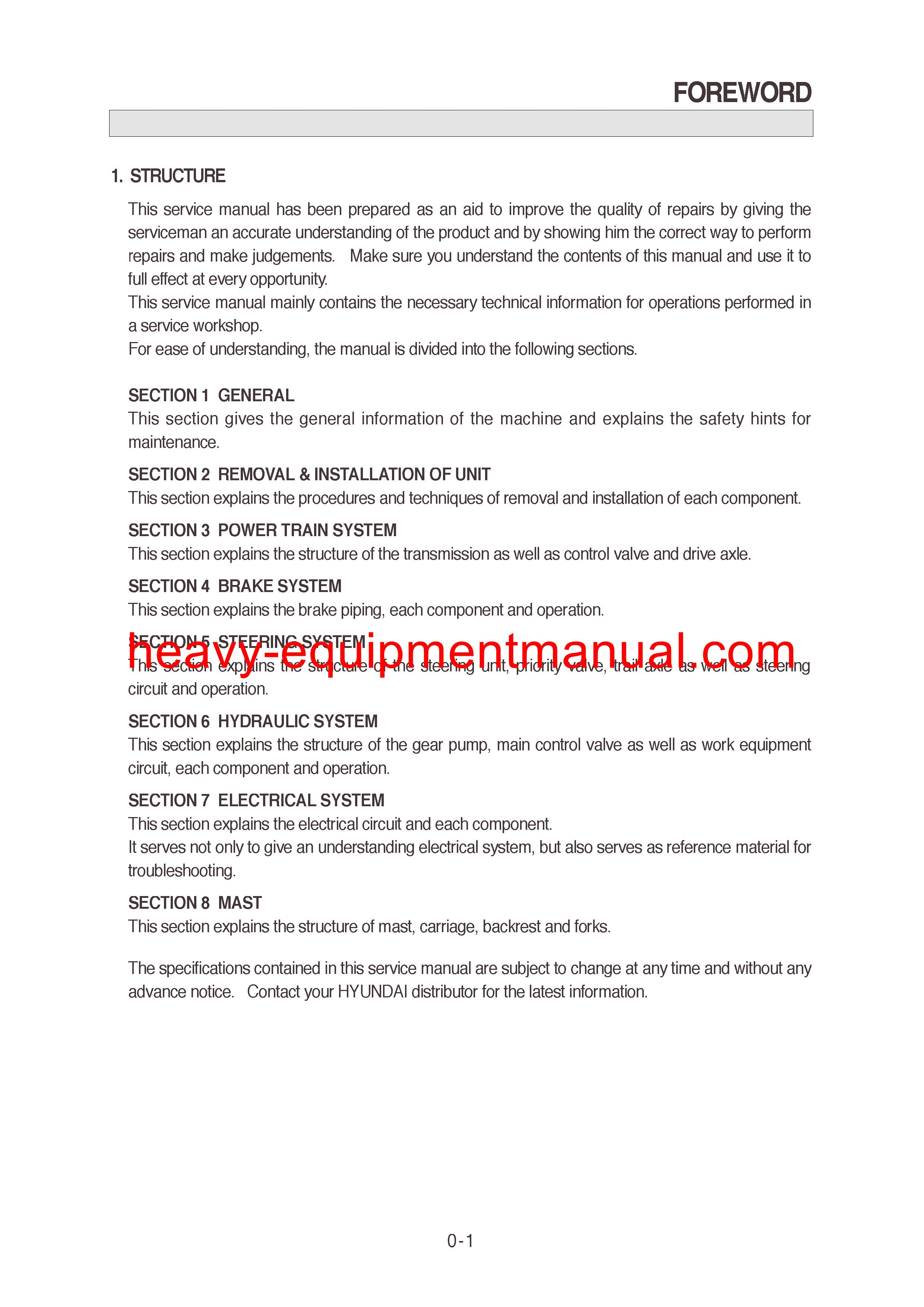 It is Complete Original Factory for Hyundai HDF50/70-3 Forklift Truck Service Manual covers all the service and repair information about Hyundai HDF50/70-3 Forklift Truck. The information in this manual covers everything you need to know when you want to repair Hyundai HDF50/70-3 Forklift Truck.