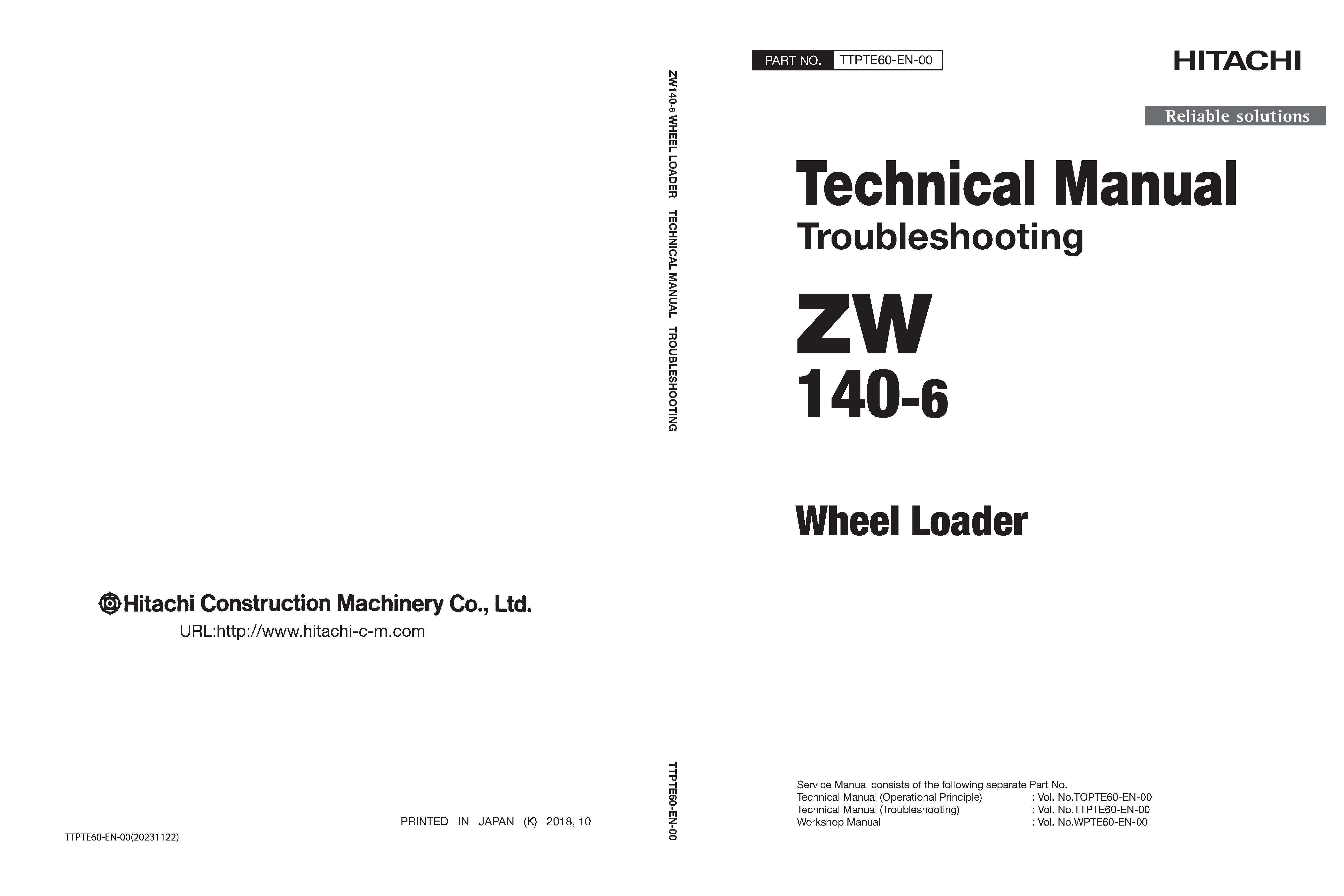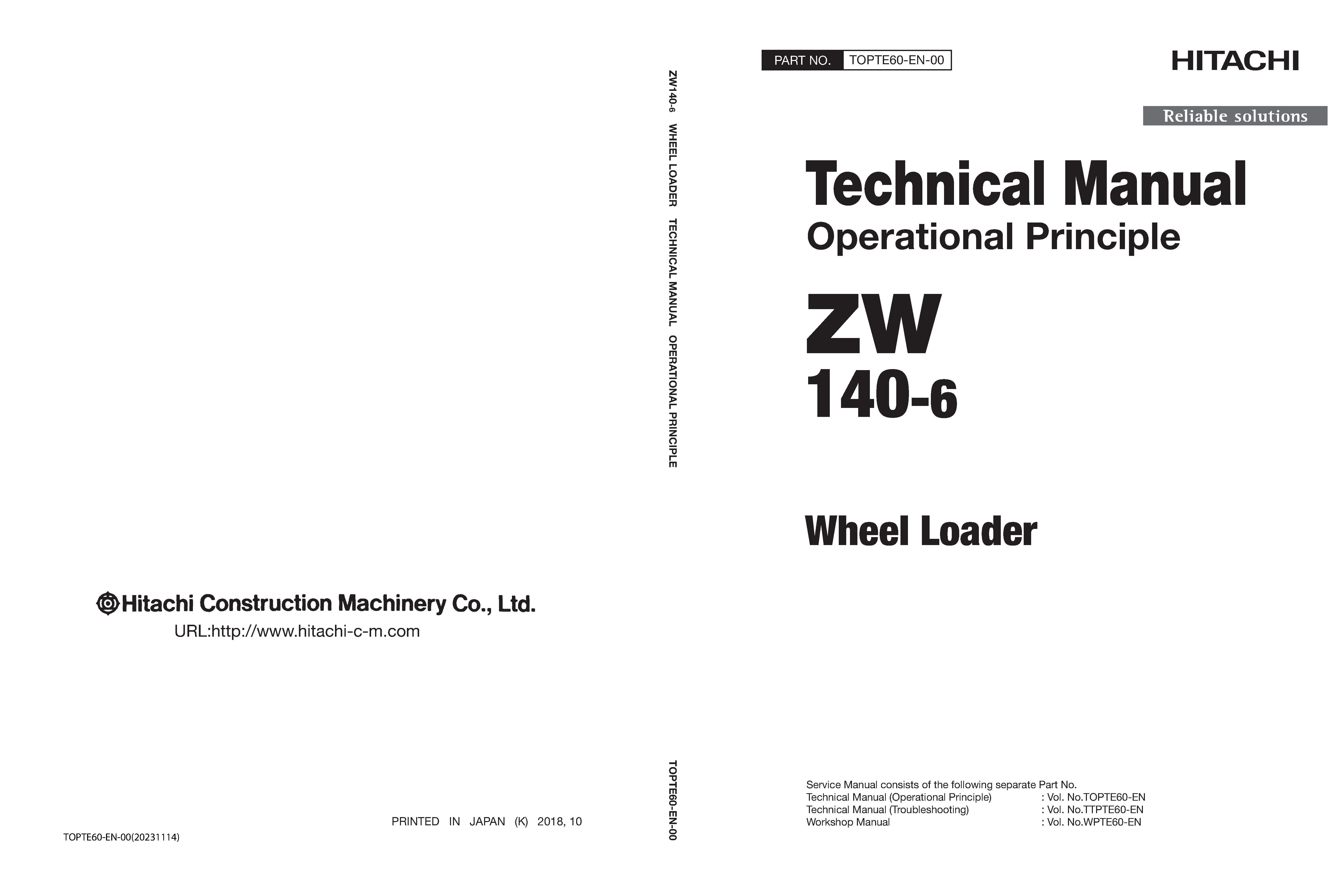 It is Complete Original Factory covers all the service and repair information for Hitachi ZW140-6 Wheel Loader.