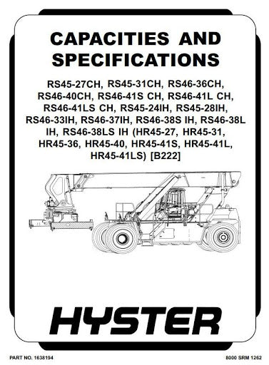 Download Hyster RS45-27 31CH 24 28IH, RS46-36 40 41L S LS-CH, RS-46-33 37 38L S LS-IH B222 Series Service Repair Manual
